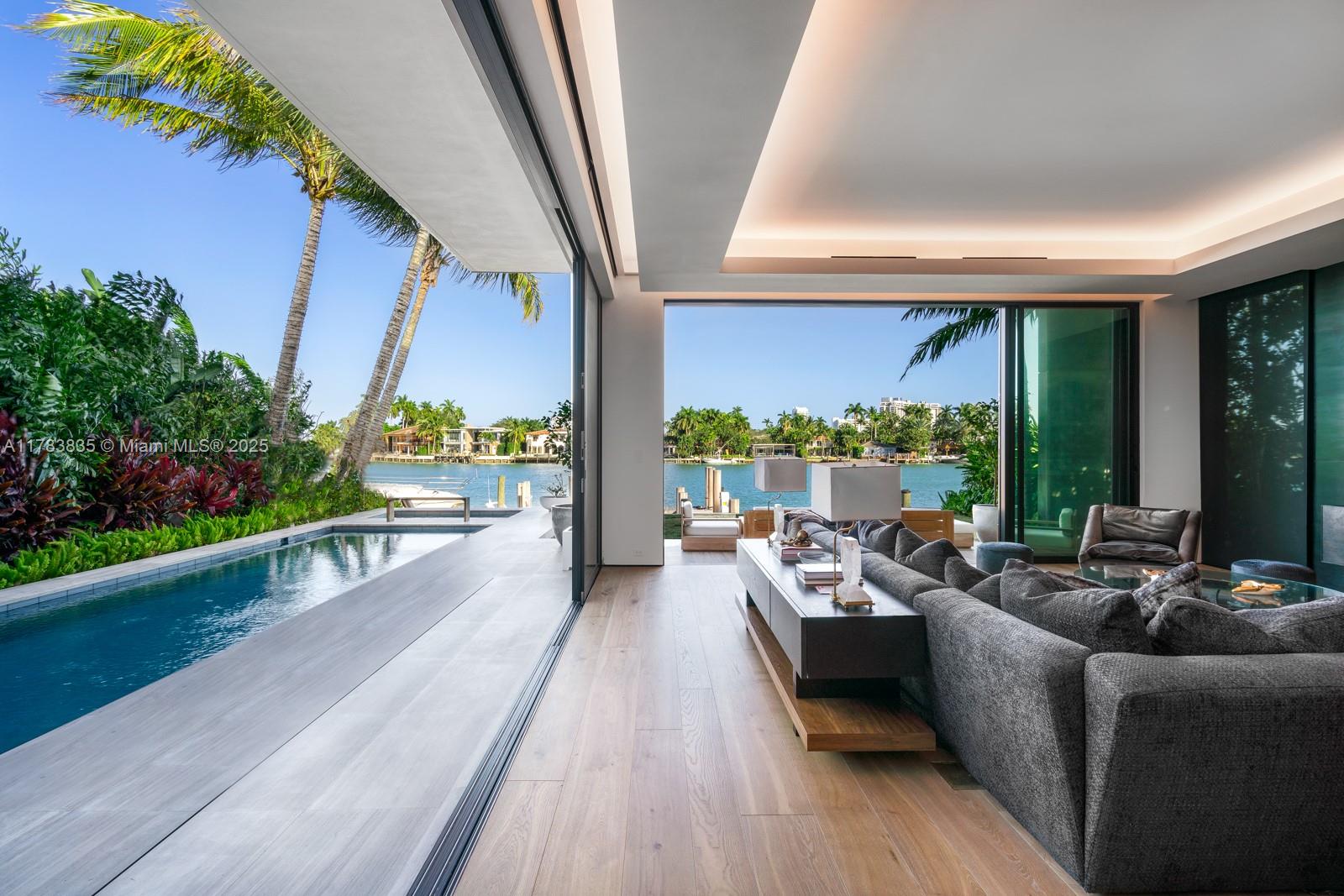 Step Inside With Me! 609 East Dilido seamlessly fuses nature and design for tropical living on the Venetian Islands. Built by Bart Reines and impeccably styled by its designer-owner, it juxtaposes teak, concrete, wood, glass and greenery. Interior highlights include retractable glass windows, custom millwork, specialty lighting & a white marble kitchen with Gaggenau appliances. A floating staircase leads to chic office loft + 4 suites. With over 1,200SF, the Primary is a true escape featuring ambient lighting, open concept marble bath, enviable dressing closet, and wraparound terrace with open bay views. This smart home fully controls lighting, air, music and more. The pool, rooftop deck, summer kitchen, solar panels, landscape, amazing dockage & 2 car garage complete the outdoor package.
