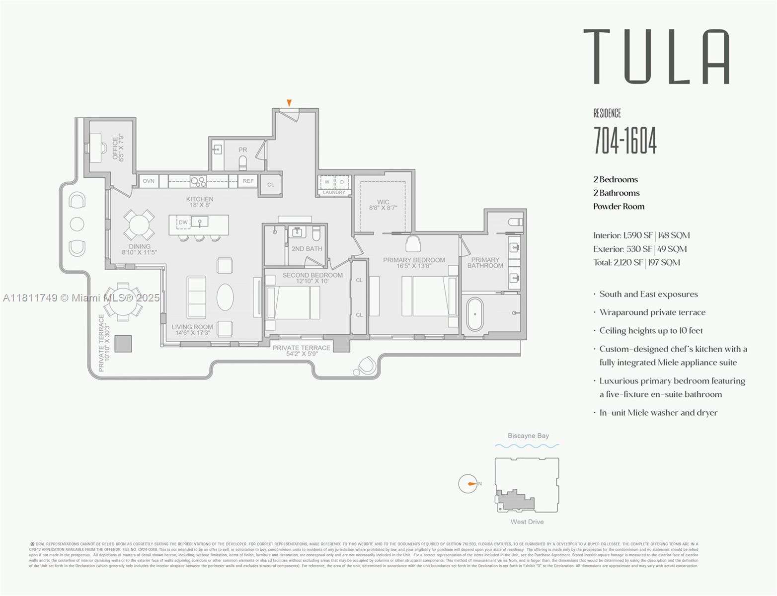 TULA Residences, a boutique luxury waterfront condominium building, home to 54 exclusive two-to-three bedroom corner Residences and six exclusive five-bedroom half-floor Penthouse masterpieces. Each residence offers max efficiency floor plans, conceptual organic interiors, 10 ft.-ceilings, custom Italian-designed chef's kitchens, floor-to-ceiling windows and sliding glass doors, private wrap-around glass enclosed terraces. The best, most breathtaking, unobstructed panoramic views of Biscayne Bay, Miami's skyline and the Atlantic Ocean. Exceptional amenities include resort-style infinity pool with cabanas, fitness and wellness center, media room, lounge, pet spa, parking garage, 24-hour concierge service. Boutique in scale. Rich in character. TULA Residences.