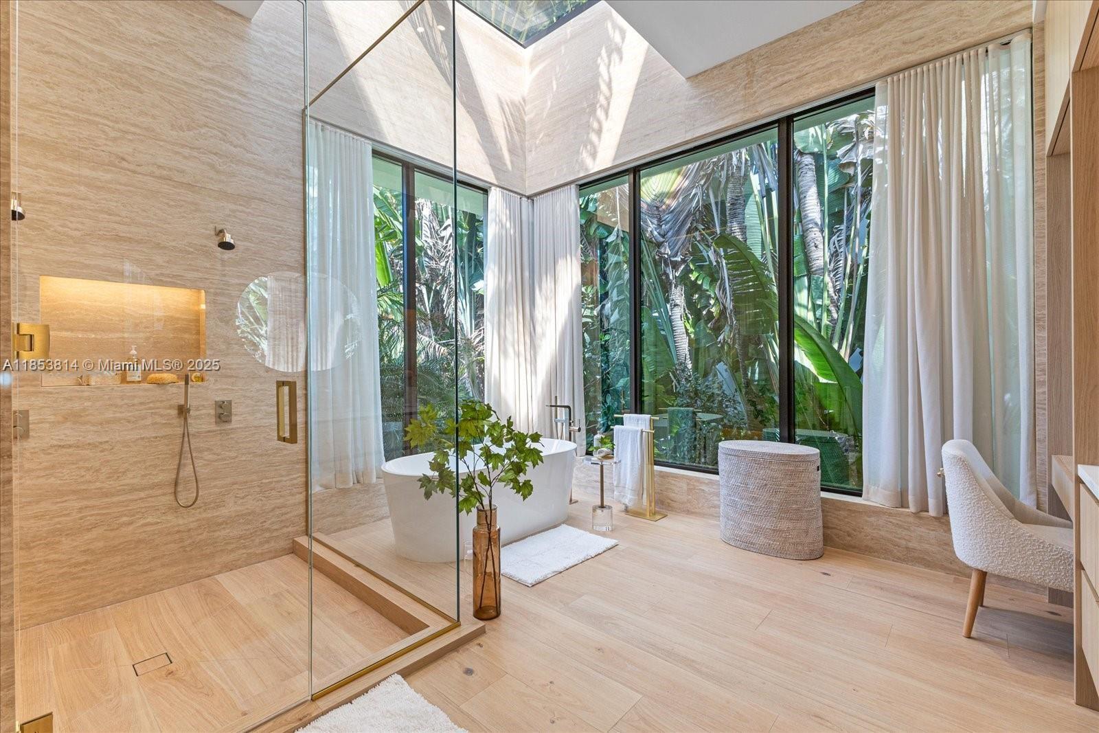 Newly constructed and elevated, this modern waterfront residence offers 9000+ SF of living space with 90 feet of water frontage on coveted, guard-gated Sunset Island III. A perfect home for those who seek both privacy and connection to Miami’s iconic waterfront boating lifestyle, with walkability to Sunset Harbor's restaurants, fitness studios, padel club and waterfront park. Design features include natural materials such as white oak, marble, and travertine to bring warmth and sophistication, while floor-to-ceiling glass and skylights create seamless indoor-outdoor living, custom Italian kitchen with top-of-the-line appliances, a heated pool with all-day southern sun exposure, spa, rooftop loft with terrace, and well-designed outdoor spaces to relax and entertain.