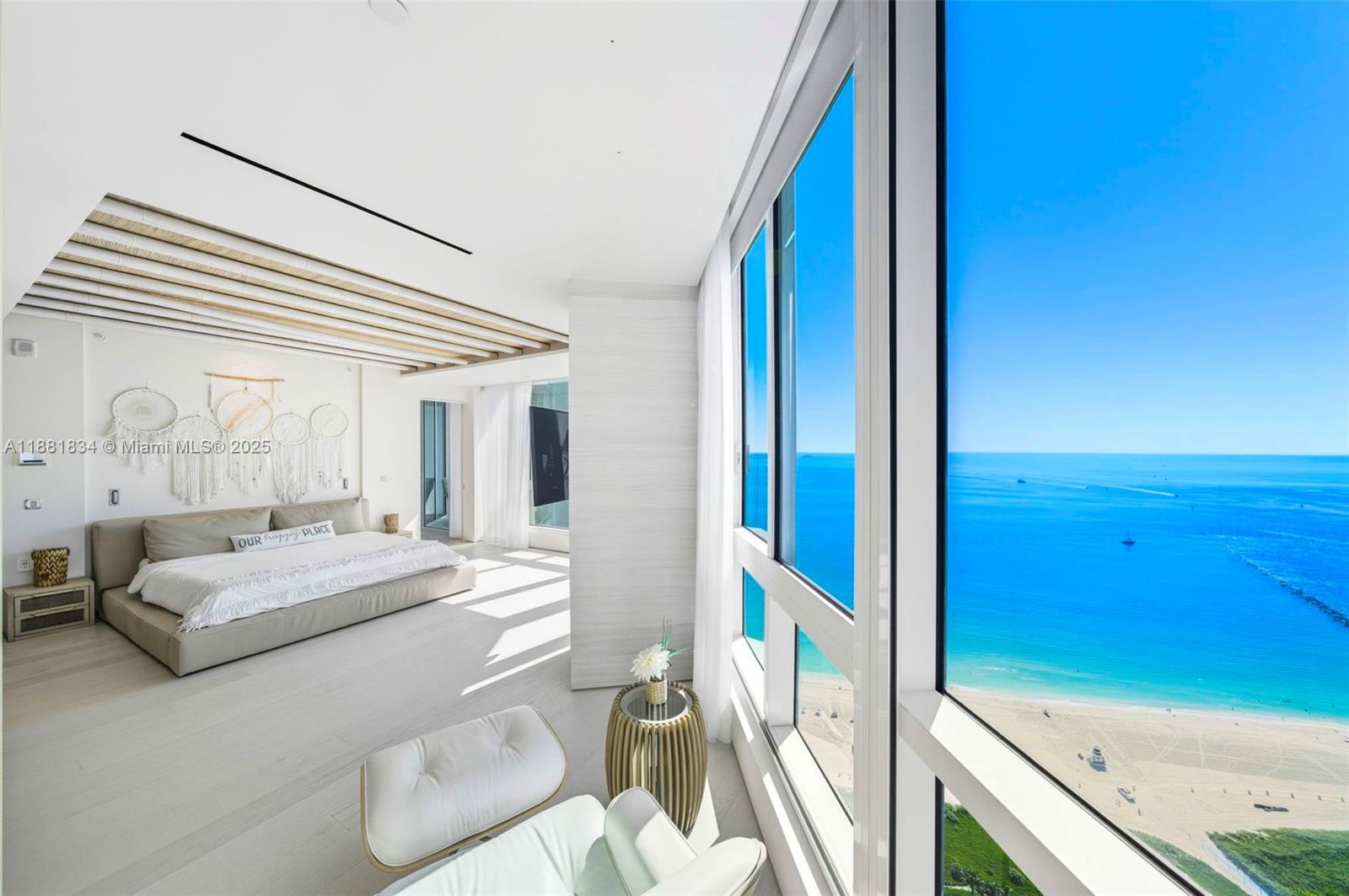 Have it all at CONTINUUM 3803, a turnkey 5,049 SF sky residence beyond compare. From Atlantic sunrise to skyline sunset, this architectural marvel by Kobi Karp boasts coveted SE-to-SW exposures. Arrive via private elevator into a grand foyer clad in fluted white oak, unveiling jaw-dropping panoramas. The grand salon stuns with a curved glass wall and retractable doors, seamlessly blending indoor/outdoor living. Curved ceilings, architectural lighting, and custom drapery enhance the refined atmosphere. Zen-inspired principal suite offers a private sunrise terrace, bath w/Dornbach fixtures, dressing rm & rich millwork. Hans Krug kitchen showcases a wood + stone island, breakfast nook, and Miele appl. Dual oceanfront offices, media room & oversized laundry rm complete this seaside sanctuary.