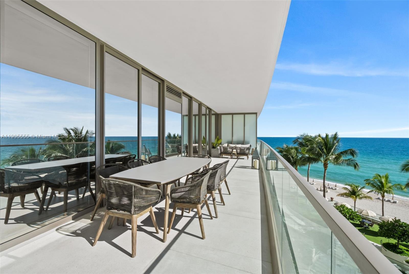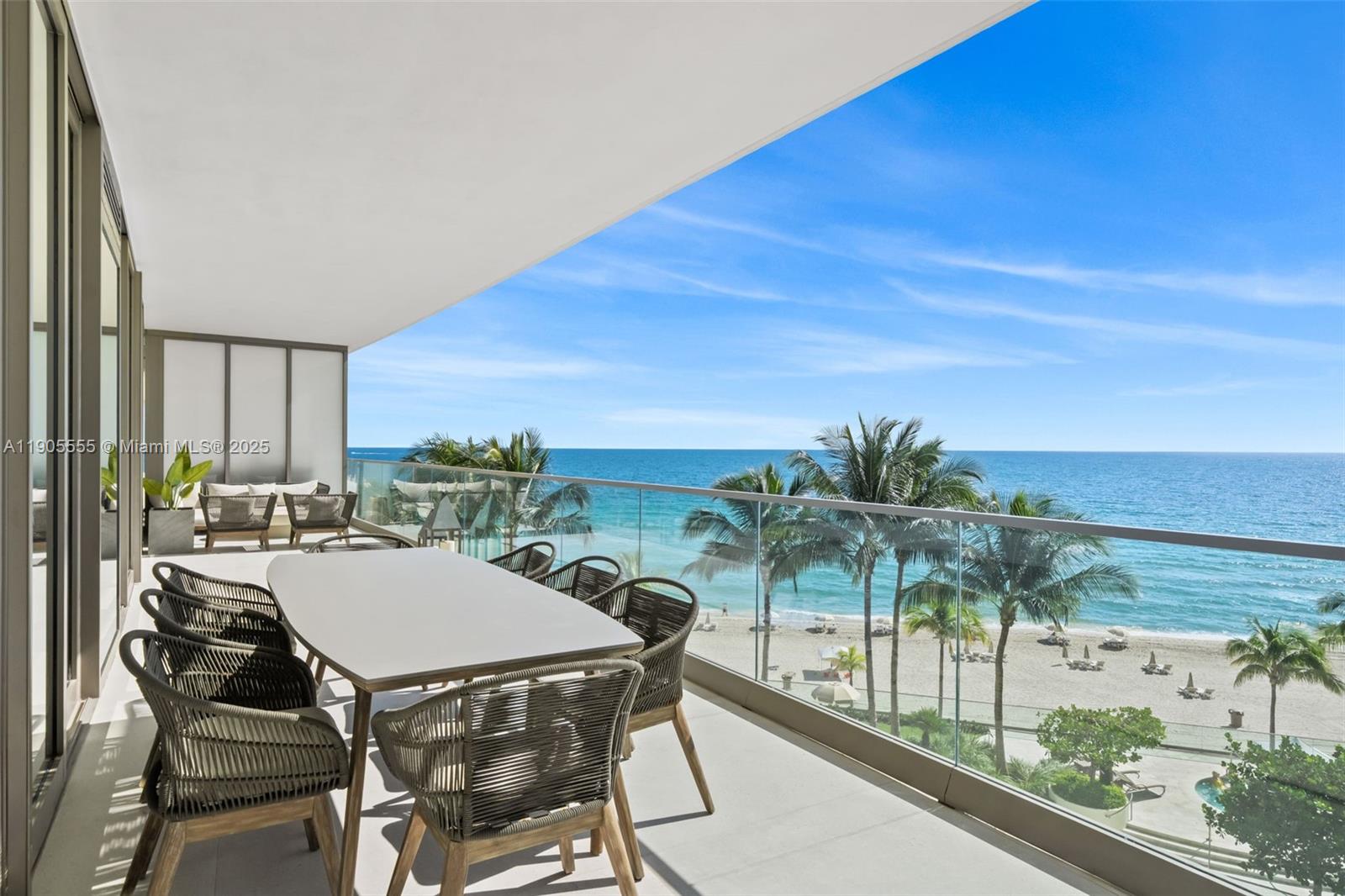 Experience refined oceanfront living in Residence 401 at the prestigious Residences by Armani Casa. This 3-bedroom + den, 5.5-bath, 2,468 SF home features an elegant open layout with floor-to-ceiling glass framing serene ocean and palm views. The spacious great room flows seamlessly to an expansive terrace for effortless indoor-outdoor living. A sleek gourmet kitchen offers custom cabinetry, premium appliances, and a large island ideal for dining and entertaining. The primary suite is a private retreat with a spa-like bath and generous wardrobe space, while all guest bedrooms feature en-suite baths. Residents enjoy world-class amenities including private beach service, oceanfront pool, spa, fitness center, restaurant, concierge, valet, and 24-hour security.
