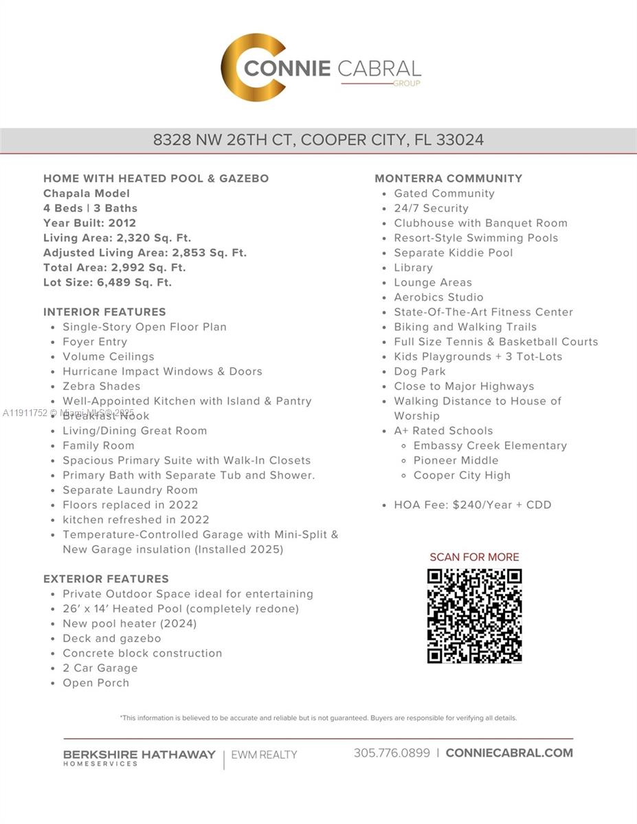 You are requesting information from Brown Harris Stevens on 8328 NW 26th Ct, Cooper City, FL 33024