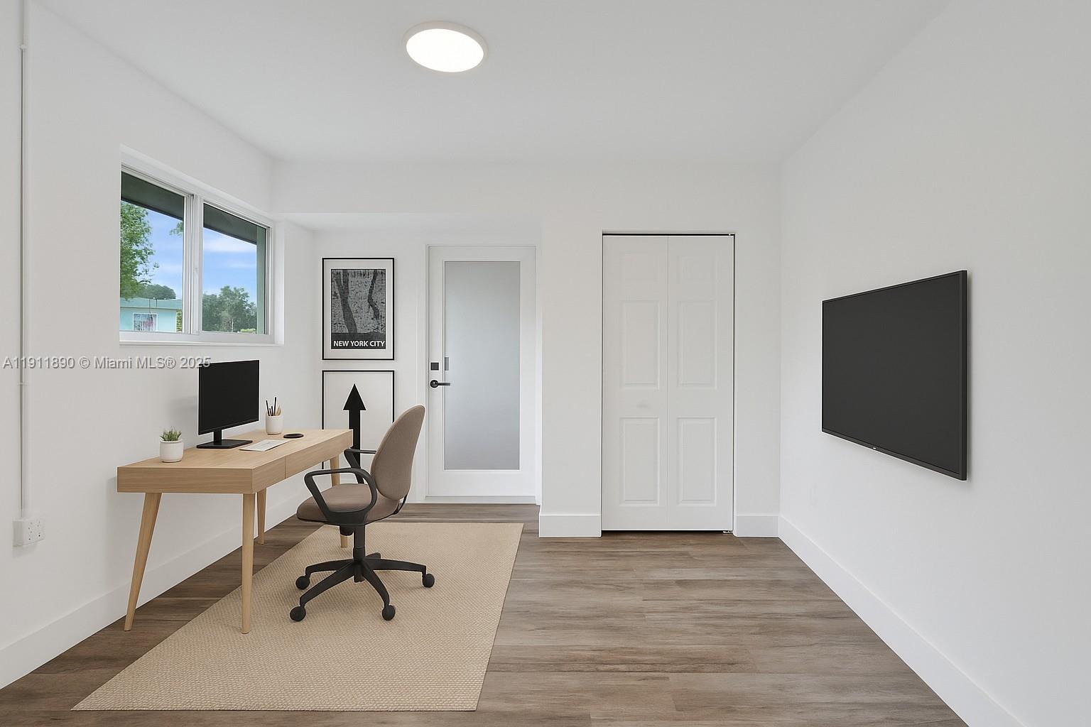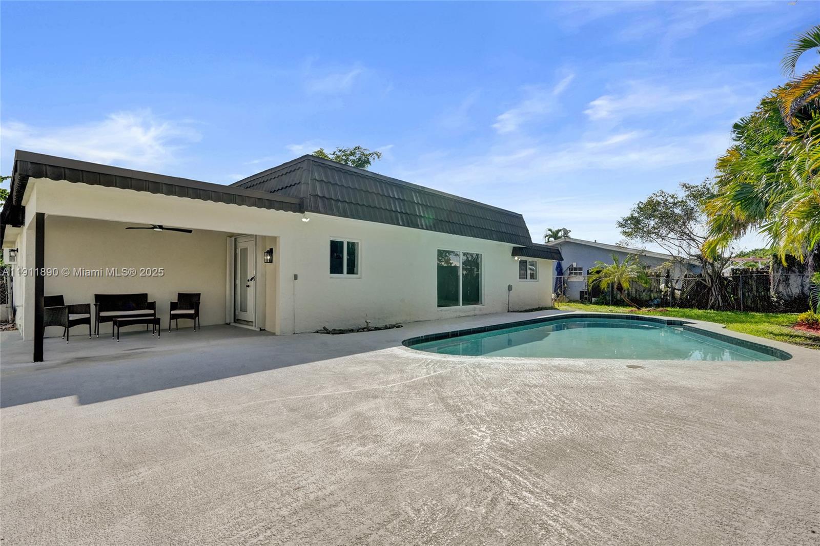 Fully renovated 4-bedroom, 2-bath pool home in the heart of Tamarac! This stunning modern residence features all-new electrical, impact windows and doors, and a bright open-concept design with luxury vinyl flooring throughout. The garage has been converted into a spacious 4th bedroom, ideal for guests or a home office. The custom kitchen offers sleek European cabinetry, quartz waterfall island, and top-quality appliances. Enjoy the amazing view of the pool from the living area and main bedroom. Beautiful designer bathrooms, new washer/dryer, and a large fenced backyard with tropical landscaping complete this move-in-ready home. Perfect blend of style, comfort, and convenience! HOA only $145 per YEAR