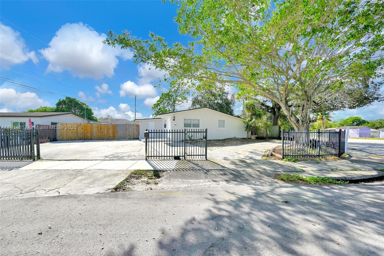 Welcome to Riverdale Estates in Miami Gardens! This turnkey 3-bedroom, 2-bath home features a brand-new 2025 roof with permits, updated flooring, modern bathrooms, and an additional utility/laundry room offering extra storage space. Sitting on a spacious 8,500 sq. ft. corner lot, this property provides exceptional parking with a wrap-around driveway perfect for boats, RVs, and all your extra vehicles. Enjoy peace of mind with window shutters included. This home is truly move-in ready, just bring your toothbrush. Conveniently located near major roadways, shopping, dining, parks, and more