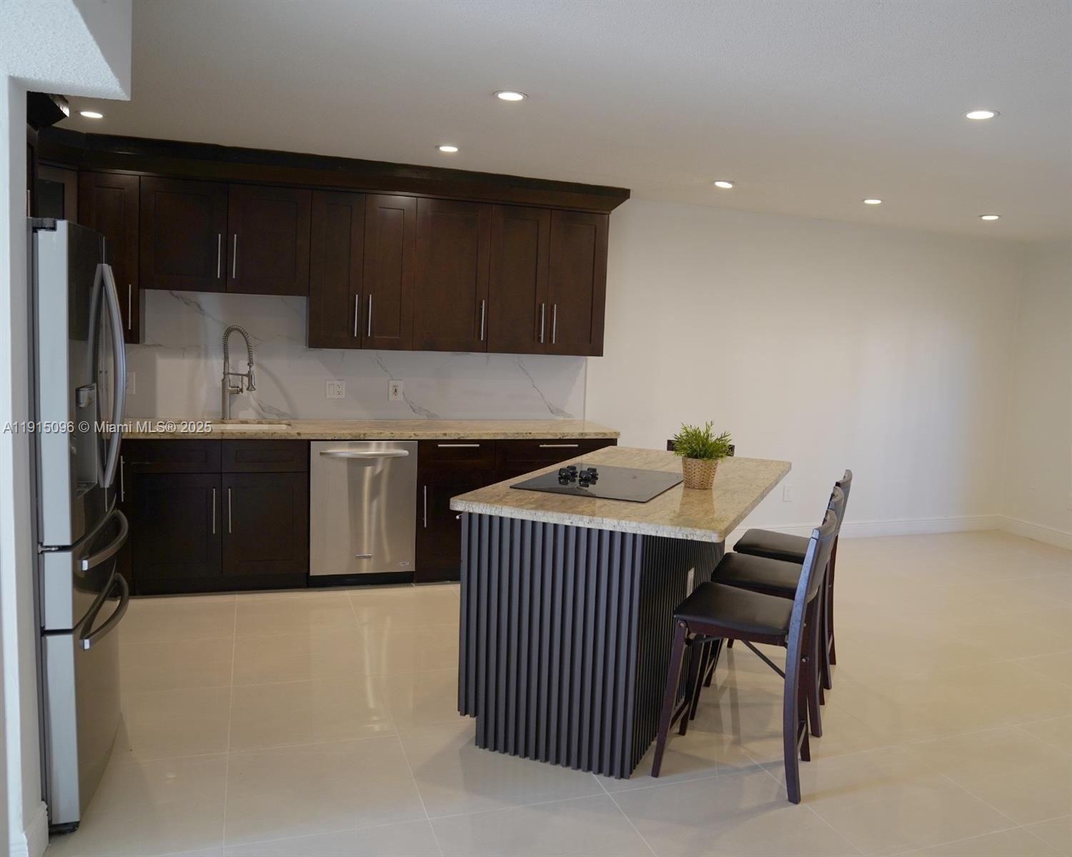 This beautifully remodeled 3-bedroom, 2.5-bath home in the heart of Amelia District. From open concept floor plan, newer roof and windows, large tiles throughout first floor, every detail has been updated for comfort and style. Enjoy year-round efficiency with a recently serviced A/C system and a tankless water heater, the stainless steel appliances and spacious cooking island make the kitchen perfect for gatherings. The large utility room with stackable washer & dryer set adds convenience. The covered, fenced, and paved patio is perfect for relaxing & entertaining outdoors. Nestled in Palm Springs Villas, this home offers easy access to airports, major highways, shopping centers, and the scenic Amelia Earhart Park. Don’t miss out on this move-in-ready gem!
