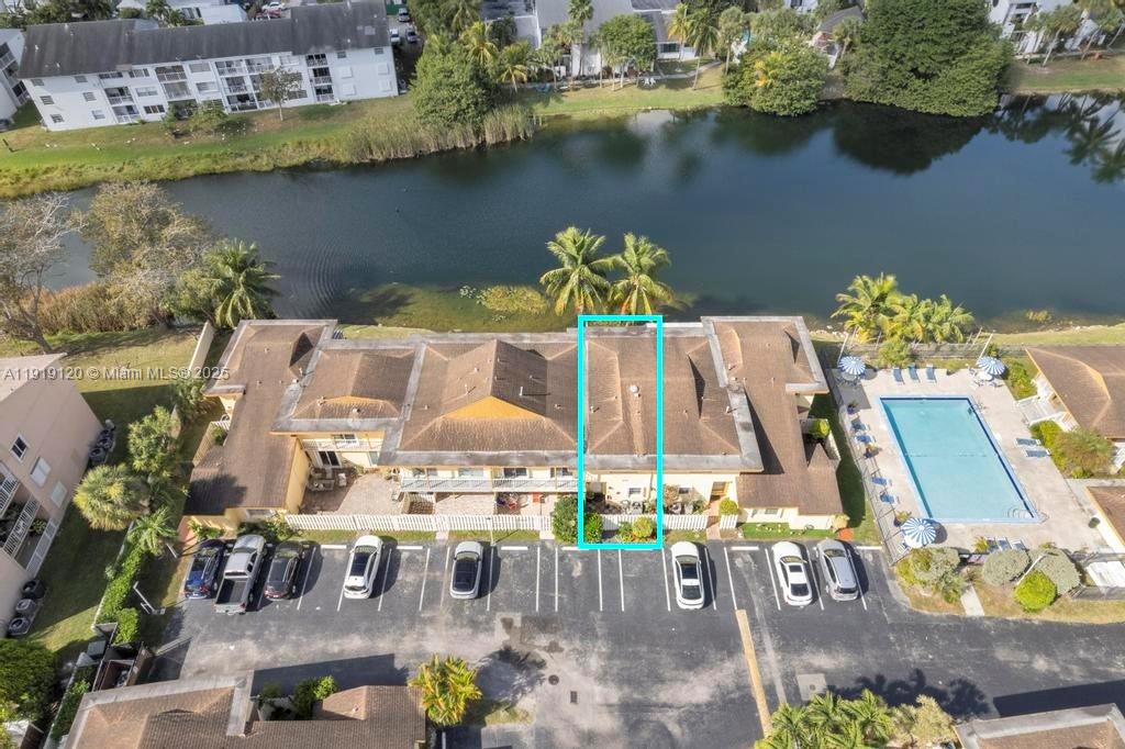The moment you open the front door, a stunning canal view sets the tone for this peaceful waterfront townhouse. Enjoy morning coffee, evening sunsets, or unwind on either balcony while taking in the serene surroundings. This beautifully updated home features modern finishes and accordion hurricane shutters for easy storm protection. Both bedrooms are upstairs, each a full suite for privacy. The primary suite includes a walk-in closet and balcony access through sliding doors, while both bedrooms have customized closets for optimal storage. A half bath on the first floor adds convenience. Full-size washer and dryer in a separate room access from the kitchen, increasing storage space and keeping cleaning supplies out of view. Gas range and gas dryer. Enjoy watching birds on the welcoming front patio from the kitchen window. One assigned spot right by the front door. Located in the highly desirable Kendall West area within Centre Court Condo—an intimate community across from Olympic Park and less than half a mile from North Kendall Drive—you’re minutes from the Kendall West Library, top-rated schools, shopping, dining, major commuter routes, and nearby hospitals. Whether you’re a first-time buyer, downsizing, or seeking a turnkey investment, this townhouse checks every box.