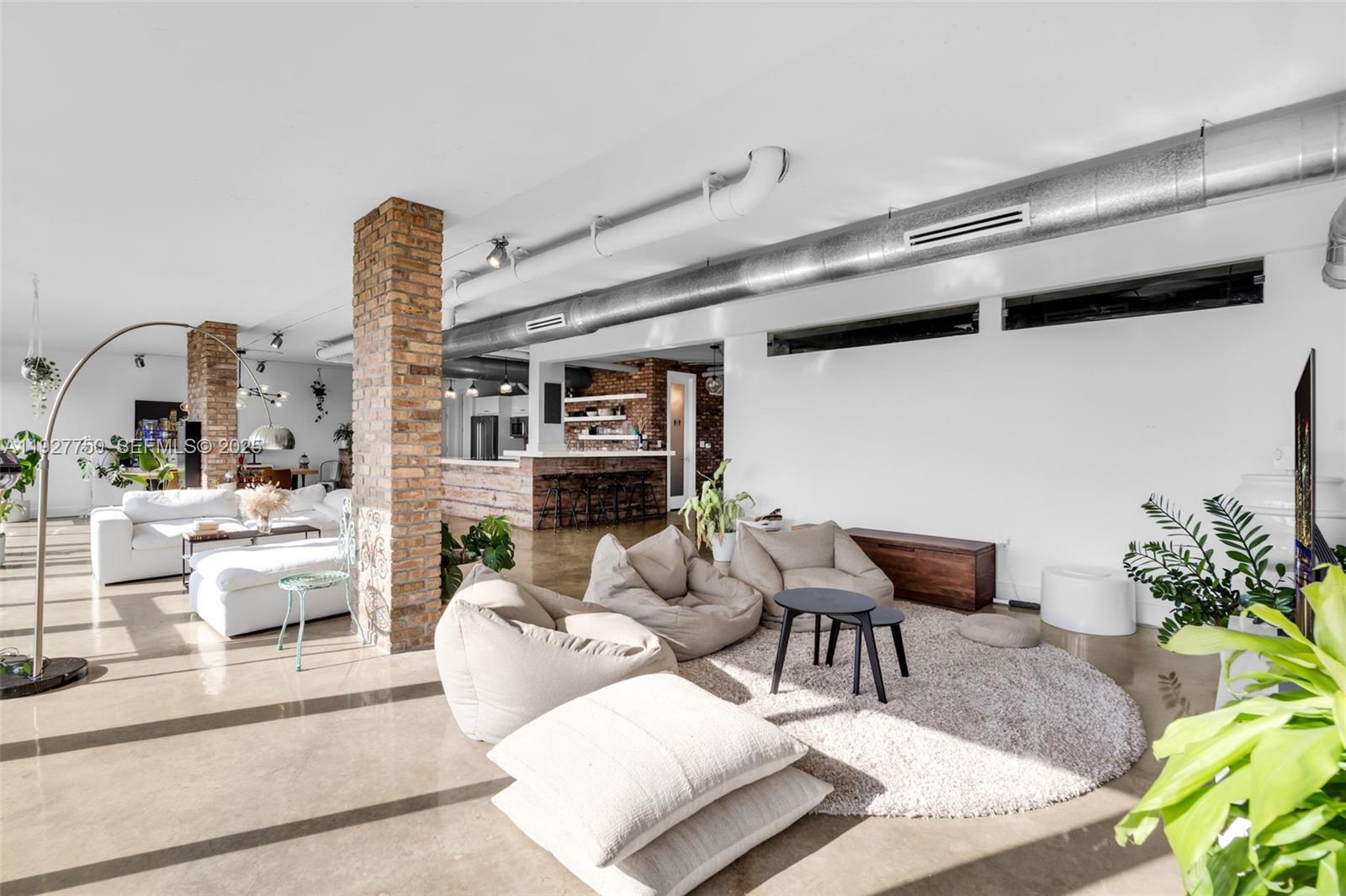 Discover this one-of-a-kind loft-style 4BD/3.5BA residence—currently configured as a 3-bedroom plus storage—offering dramatic open-concept living, sweeping floor-to-ceiling glass, and panoramic views of Biscayne Bay, the Miami skyline, and lush tree canopies. Designed with an industrial-modern aesthetic, the home showcases exposed ducts, polished concrete floors, brick accents, and custom wood millwork throughout. The expansive great room seamlessly integrates living, dining, and an open chef’s kitchen, creating an ideal setting for entertaining. The primary suite delivers a true retreat with incredible natural light, oversized balcony access, and a sculptural soaking tub set against skyline vistas. Multiple lounging areas, flexible spaces perfect for office or creative use, and generous storage enhance daily living. The boutique building features a rooftop dry sauna, pool and is just a 3-minute walk from beautiful Morningside Park—offering an exceptional blend of volume, character, lifestyle, and location at the edge of Morningside and the MiMo District.