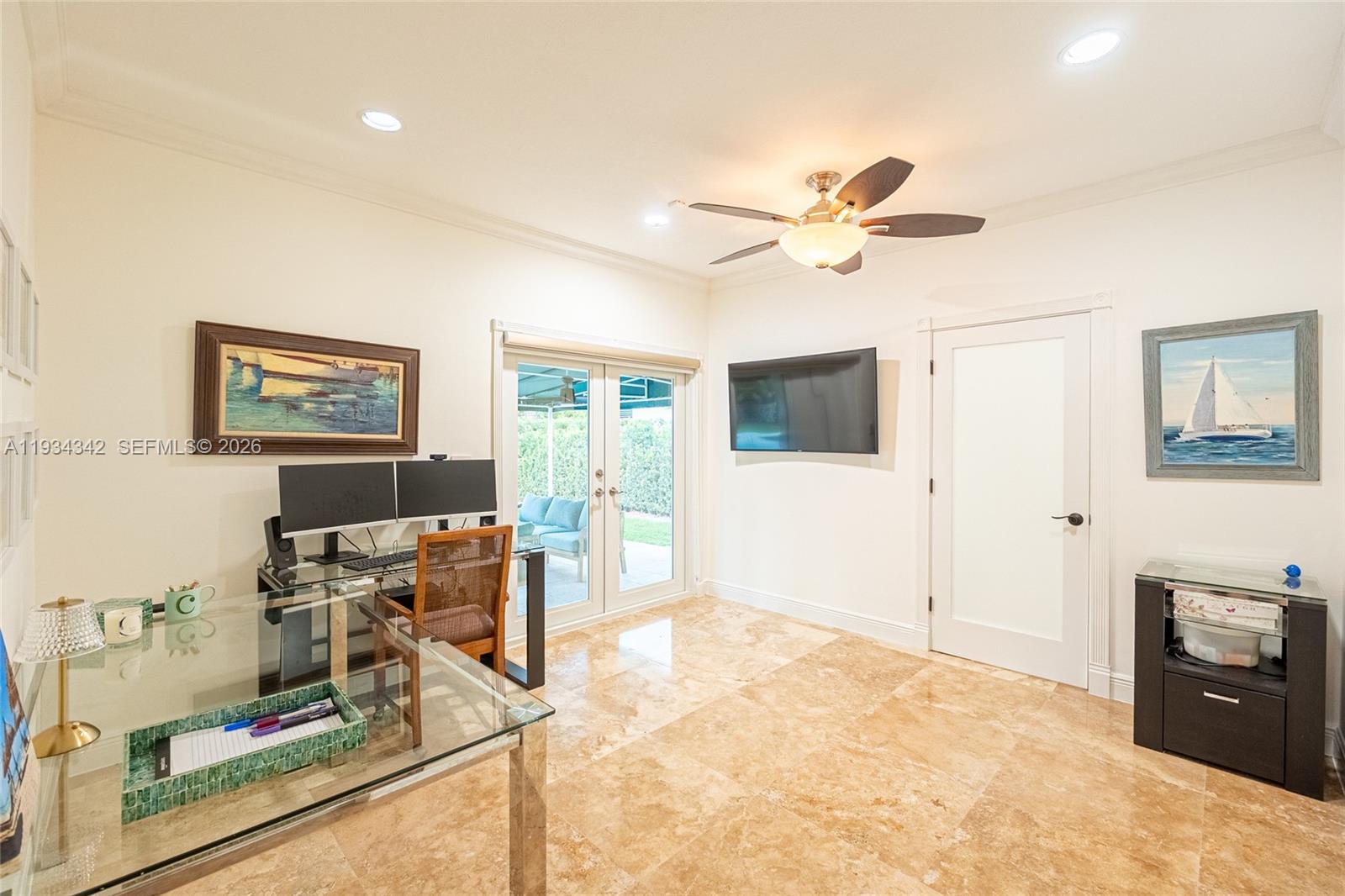 Spacious and well maintained 3-bedroom, 2.5 bath plus a den that can easily be converted into an additional bedroom, office or flex space. The interior showcases elegant marble flooring throughout, enhancing the homes bright and open fell. Spacious living areas flow effortlessly into the outdoor space, where you'll find a private pool, ideal for entertaining or relaxing year-round. The home also includes a convenient interior laundry room. Situated on an oversize lot, the property offers generous outdoor space and privacy. Pride of ownership is evident throughout this move-in-ready home, making it an excellent opportunity for buyers seeking quality, functionality and flexibility.