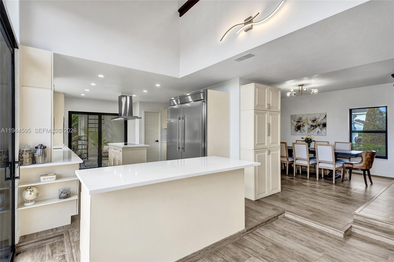 A RARE & TRUE TURN-KEY 6 BED/4 BATH RESIDENCE W/ IMPRESSIVE FEATURES & INCOME POTENTIAL UNSEEN IN THE AREA. Very few homes offer this level of size and design and NO OTHER HOME ON THE MARKET HAS SIX TRUE BEDROOMS with, not one, but THREE PRIMARY MASTER SUITES & ENSUITE BATHROOMS. The layout includes ONE PRIMARY ON MAIN LEVEL & TWO UPSTAIRS providing privacy & versatility. The main-level primary offers a PRIVATE DOUBLE-DOOR EXTERIOR ENTRANCE ideal for SEPARATE LIVING OR ADDITIONAL INCOME POTENTIAL. The living room & (2) downstairs bedrooms are highlighted by VAULTED TIMBER WOOD CEILINGS adding warmth, character, and architectural presence also rarely seen. Over $300,000 IN RENOVATIONS have been completed resulting in a space that is FUNCTIONALLY NEW. Updates include IMPACT WINDOWS AND DOORS, APPLIANCES, A DOUBLE-WIDE BRICK-PAVED EXTERIOR, & DESIGNER FINISHES throughout. The SPLIT FLOOR PLAN & EXTRA-WIDE LOT FOOTPRINT create an open, airy feel w/ beautiful curb appeal just 4 MINS FROM 836 HIGHWAY. Outdoor living features THREE BALCONIES, SECOND-FLOOR ACCESS VIA A SPIRAL STAIRCASE, and a 30x13 EXTRA-LONG, CONVERTED SALTWATER POOL. CITY-APPROVED ARCHITECTURAL PLANS FOR ADDED 2 BED/1 BATH GARAGE CONVERSION convey with the sale offering a path to FUTURE INCOME OR ADD’TL LIVING SPACE. TAXES also COMPARATIVELY LOW. Come & enjoy this refined blend of LUXURY, SCALE, AND FUNCTIONALITY that sets this home apart. SEE ATTACHED LIST FOR FULL FEATURES & UPDATES. EASY TO SHOW VIA SHOWINGTIME.