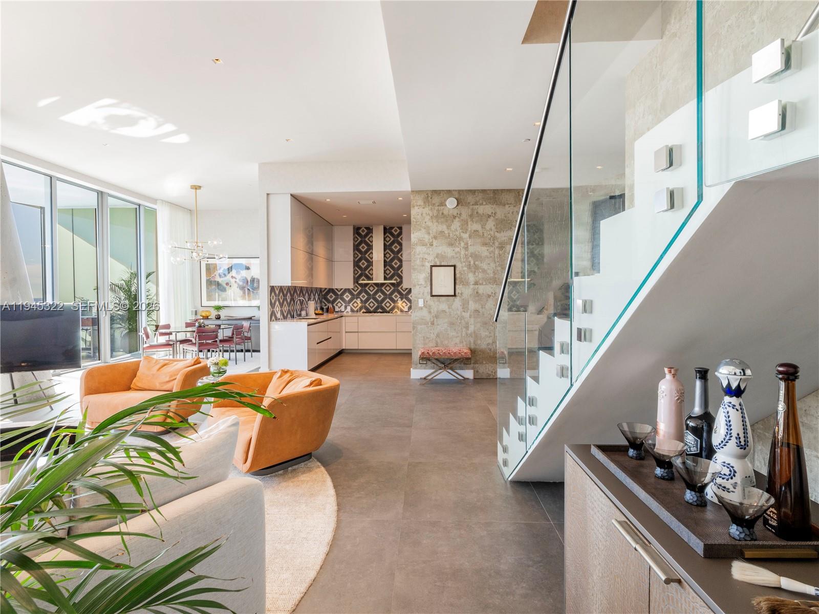 Exclusive, move-in-ready duplex masterpiece in the rarely available South Tower of the iconic Grove at Grand Bay. Spanning the sixth and seventh floors, this designer-finished, offered fully furnished split-level residence offers 3 beds, 3.5 baths, soaring 12' ceilings, and dramatic floor-to-ceiling glass framing unobstructed, south-east facing bay views. Two massive 12'-deep terraces function as outdoor living rooms. Grove at Grand Bay isn’t just a place to live—it’s a landmark that reinvented the Coconut Grove skyline. Designed by visionary architect Bjarke Ingels, this boutique building is celebrated for its striking form, white-glove service, and grand, gallery-like residences. Amenities include: a private dining room with an in-house chef, state-of-the-art gym, rooftop and ground-level pools, a world-class spa, butler service, a serene library, and 24-hour concierge. A true sanctuary of design and exclusivity.