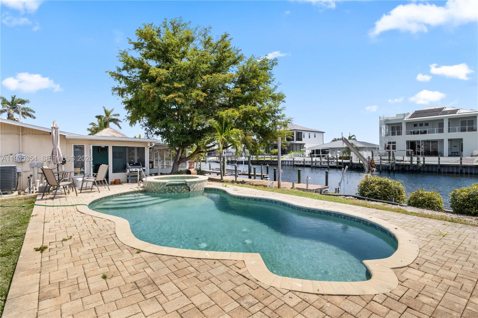 Welcome to the largest double lot in Matlacha—an incredibly rare opportunity to live on the water with wide-open views that stretch for miles. This expansive property offers unmatched space and potential in one of Florida’s most colorful and charming coastal communities. Multiple outdoor lanais and covered living areas provide plenty of room for entertaining or relaxing in the island breeze. Enjoy the pool, with ample room left to create the ultimate tropical retreat. A huge private dock extends into the water and includes a 63-foot boat dock with a 12,000 lb. capacity—perfect for serious boaters looking for quick access to the open water. The home itself has a spacious layout and good bones but would benefit from some updating. Still, it’s the lot that truly sets this property apart—double the size of most in Matlacha, with room to grow, incredible views, and endless waterfront possibilities. Don’t miss your chance to own this one-of-a-kind slice of paradise