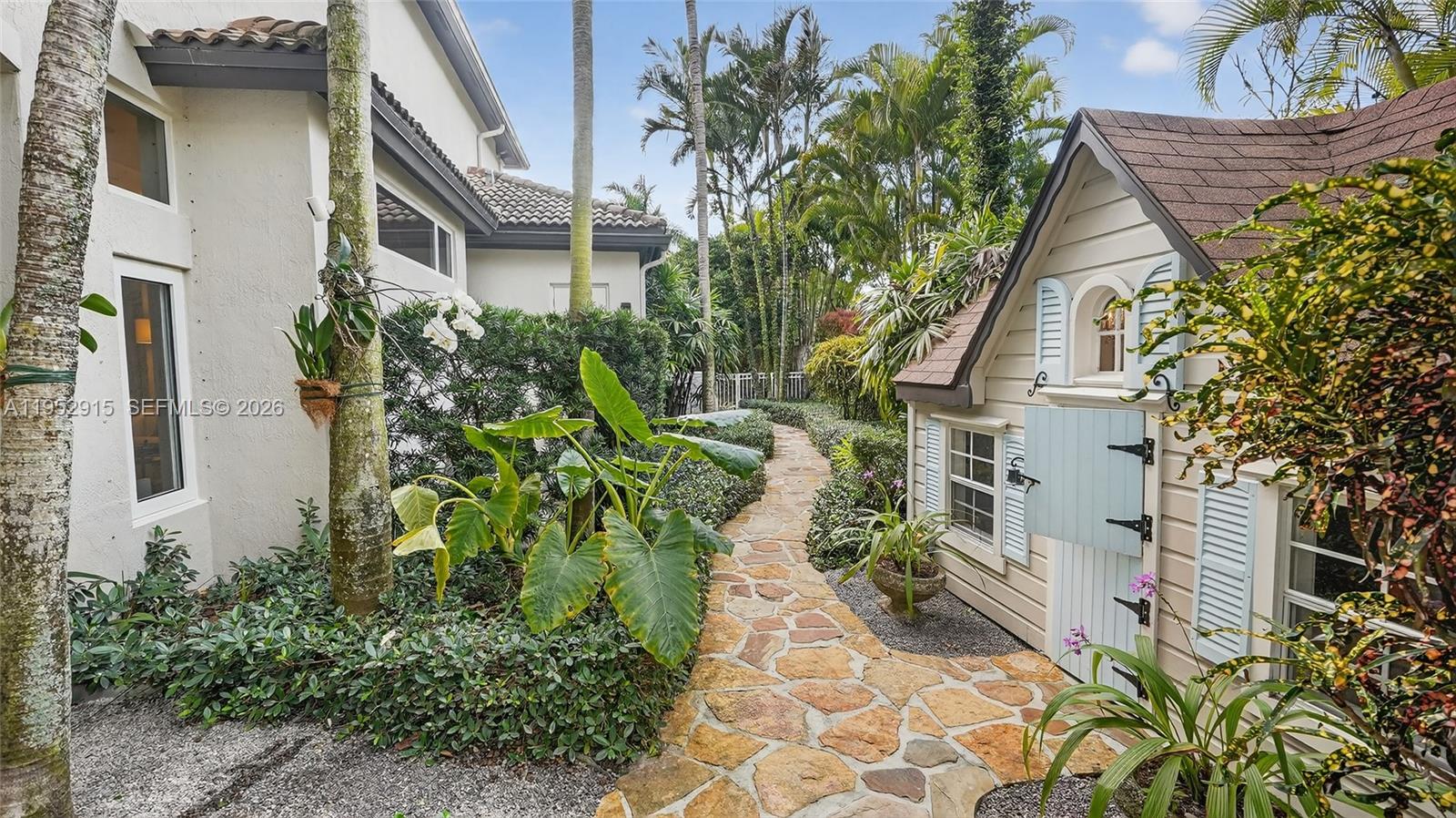 From the moment you enter this gated community, life begins to slow down. Tucked away on a quiet cul-de-sac, this home offers rare privacy, peace of mind, and the feeling of a true luxury retreat—where children can safely play freely outdoors. Out back is where the lifestyle truly unfolds. Designed as a private sanctuary, the backyard features a resort-style pool, a full outdoor kitchen, and thoughtfully planned green spaces that invite a connection to nature. A charming cottage is nestled among the greenery, creating a setting that feels peaceful, intentional, and deeply grounding. Inside, light-filled living spaces flow seamlessly through the living room, formal dining area, and chef’s kitchen. The kitchen is accompanied by a gas Wolf range, Sub-Zero refrigerator, and electric double wall ovens. Extensive custom millwork throughout the kitchen, family room, and library adds craftsmanship and architectural character. A dedicated wine room enhances the home’s refined yet relaxed lifestyle. Custom lighting and chandeliers elevate each space. A three-car garage—with one bay converted into a home gym offers flexibility for modern living. Impact windows and a whole-home generator provide comfort and peace of mind. This home offers a coveted suburban lifestyle with walkability—just minutes to restaurants, parks, water access, and everyday conveniences. Ideally located near multiple highly acclaimed private schools and within an excellent public school district.