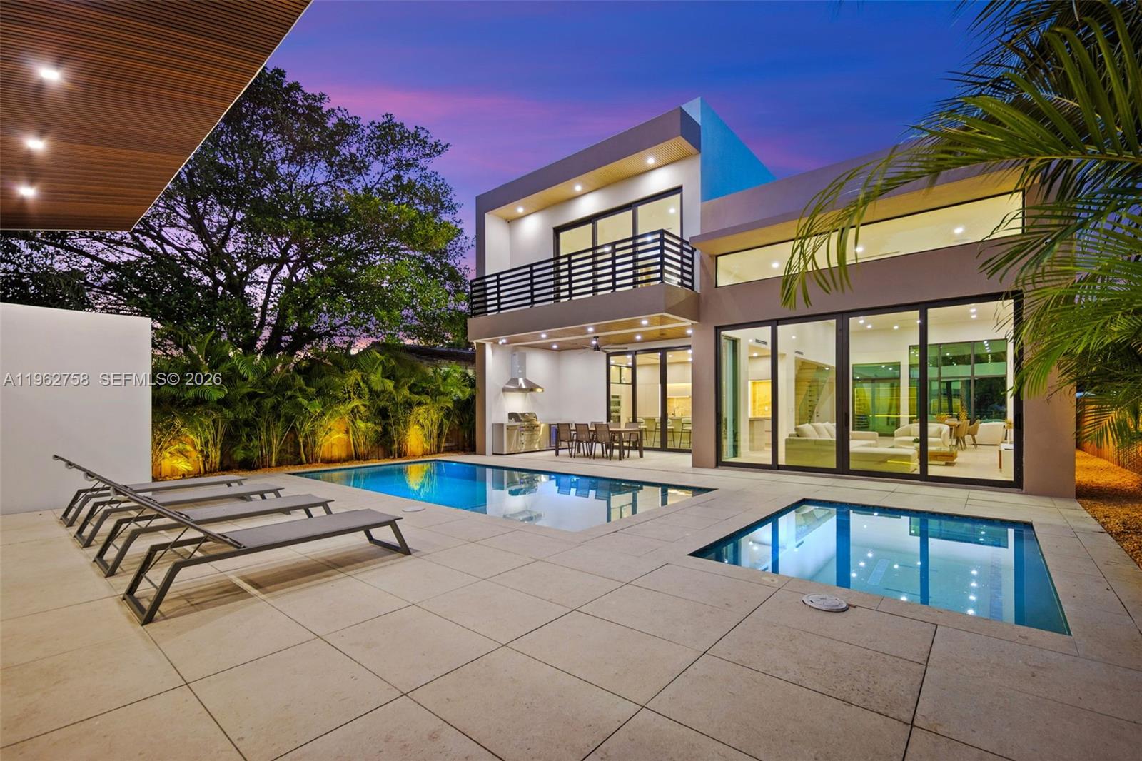 Refined architecture and elevated finishes define this newly completed Buena Vista residence. Oak floors, custom backlit LED accents, and expansive floor-to-ceiling glass create a sophisticated, light-filled atmosphere throughout. Generous balconies and an open layout enhance the seamless connection between indoor living and the surrounding outdoor spaces. The kitchen is equipped with Fulgor Milano and Fhiaba appliances, Taj Mahal quartzite countertops, and custom flush cabinetry, flowing directly into the outdoor entertaining area. This 5-bedroom, 6-bath home features oversized en-suite bedrooms with custom California Closets, and a two-car garage for added convenience. The backyard includes a saltwater pool, spa, and summer kitchen. A detached wellness suite / guest house offers its own kitchen, living area, sauna, cold plunge, and full bath. Minutes from the Design District, Downtown, and Miami Beach.