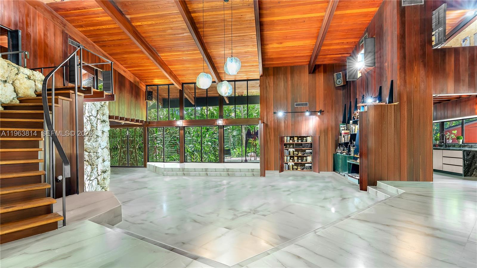 First time offered under $10M. Rare opportunity in highly coveted Ponce-Davis. Previously listed at significantly higher price points — now positioned to sell. Corner lot offering exceptional privacy in one of Miami’s most prestigious neighborhoods. Architecturally distinctive residence with soaring ceilings, expansive living spaces, and lush mature landscaping. Organic design featuring structural steel construction, California redwood, freeform pool with 50-ft lap lane, multifunctional, extremely large great room. Make this your Tropical Organic Sanctuary Paradise!