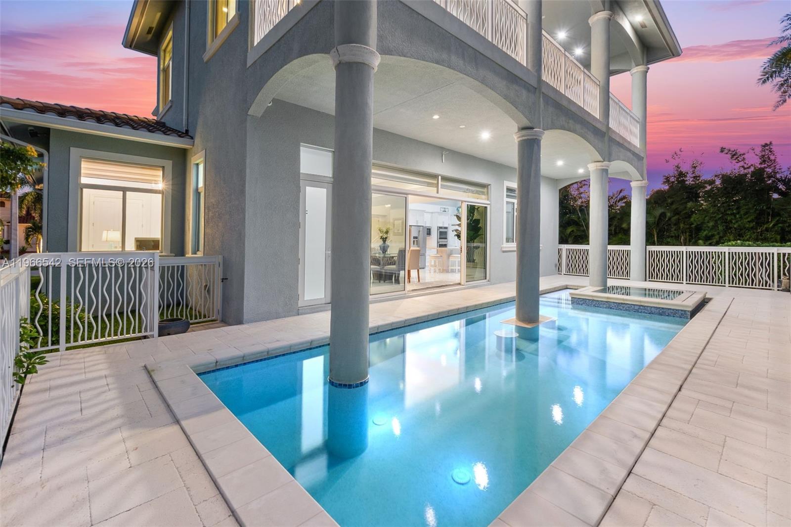 Luxurious fully furnished Marco Island waterfront residence, professionally decorated and move-in ready. This 4-bedroom, 4-bath home blends refined design with effortless coastal living, showcasing tranquil channel views and water access with potential for dock addition. Soaring 24-foot ceilings, porcelain flooring throughout the home and balconies, wood crown moldings, and custom coffered ceilings create a grand yet inviting interior. The open-concept living and dining areas are filled with natural light and designed for entertaining. The chef’s kitchen features KitchenAid Architect Series appliances and Taj Mahal Brazilian stone countertops, while all bathrooms and the laundry room are finished in white quartz. Custom built-in closets, impact windows and doors, barrel tile roof, exterior camera system, elevator, and dual AC units add comfort and peace of mind. The entire second floor is dedicated to the private primary suite with sitting area, spa-style bath, and oversized closet, while a first-floor junior ensuite is ideal for guests or multigenerational living. Outdoors, enjoy a resort-style setting with a heated Pentair pool and spa on an expansive deck overlooking the water, plus convenient pool bath access. A paver driveway and two-car garage complete the property. Experience the Marco Island lifestyle with boating, sunsets, and year-round entertaining in a home designed for luxury and relaxation.