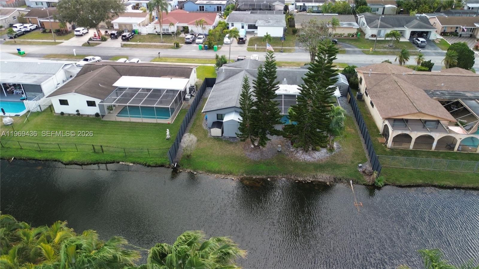 Beautiful true 5 bedroom home in great location of west Sunrise. Ready to make this your new home to enjoy for many years. Large home with a great layout and split floor plan. You will love the amazing sunsets reflecting off the stunning and tranquil water views. Enjoy the privacy of the pool with huge fully screened patio with LED lights and mounted TV, wonderful for BBQs and entertaining. Pool recently redone with diamond brite along with color changing lights, and entire deck redone. Lower privacy shade screens to enjoy private sunbathing. Impact windows and doors throughout. Updated and spacious kitchen with new quartz counters and lots of cabinets and pantry space for storage. Beautiful recently remodeled primary bathroom. High quality wood laminate flooring in all bedrooms. Garage converted to an office/media room and can easily be converted back. Central a/c approx 5 yrs old and newer split unit a/c's in the primary and office/media room. Fully wired security system and cameras stay. Tons of storage with 3 sheds out back, or you can use the side with double gates that has 25 ft of space for a boat or RV. You wont pay to water the grass as the sprinkler system feeds from the canal. No HOA or restrictions. Great location close to Panther Stadium/Amerant Bank Arena, Sawgrass Mall, and the Sawgrass Expressway for easy access to the Beach, Ft. Lauderdale, Miami, or Palm Beach. This is a must see and a great opportunity you won't want to miss out on! Floor plan in photos.