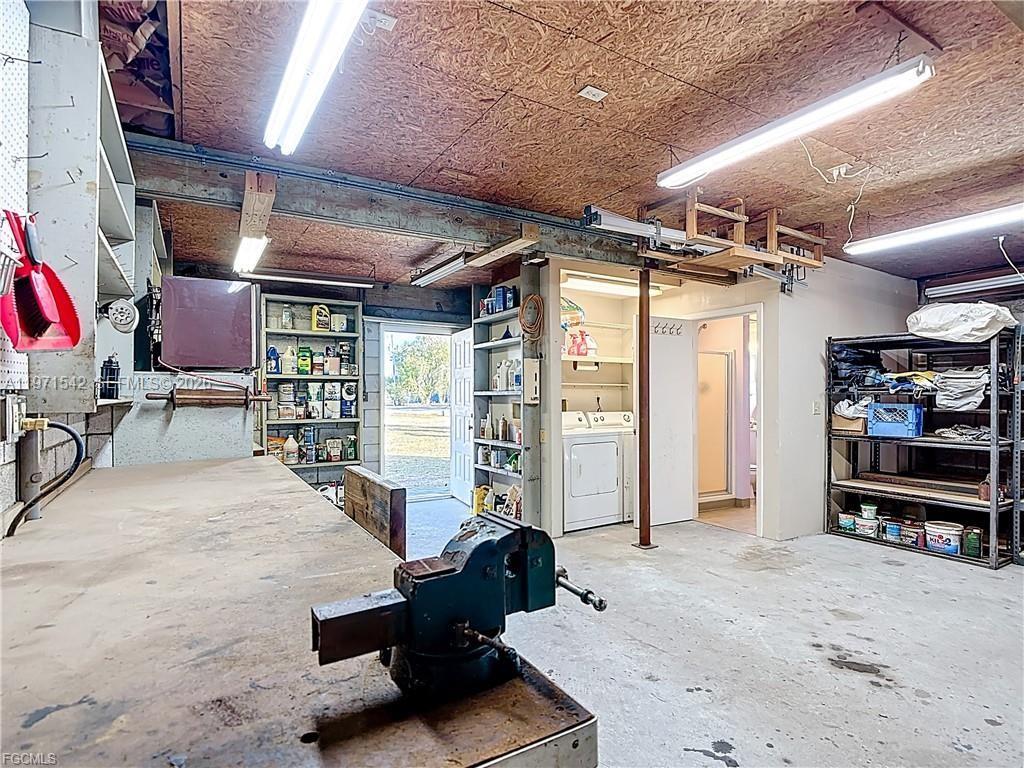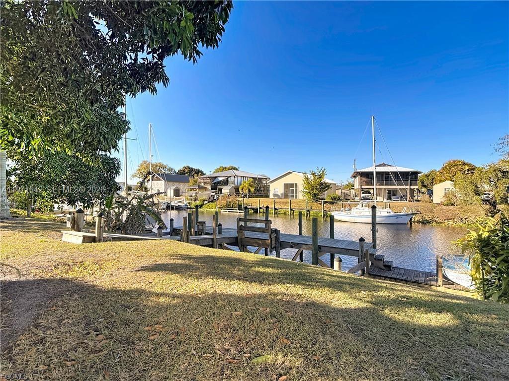 Waterfront Retreat in Turkey Creek – Gateway to Florida’s Legendary Waterways! Tucked away in the distinctive boating community of Turkey Creek, an Ortona subdivision adjacent to the historic Ortona Locks, offers an authentic Old Florida lifestyle with exceptional boating access. Set on a 65’ x 100’ deep-water canal lot, the property features a sturdy dock equipped with water and electric, providing effortless access to the Caloosahatchee River, part of the Intracoastal Waterway. The wood-frame home is elevated on a solid concrete block foundation with concrete pilings and topped with a durable metal galvalume roof. The upper level offers approximately 1,300+/- square feet, featuring two bedrooms, one bath, a galley kitchen, and a spacious great room for living and dining. The heart of the home is the dramatic living area, highlighted by a rustic tongue-and-groove vaulted wood ceiling, a cozy Franklin stove, and expansive sliding glass doors that open to a second-living-room-sized screened porch—perfect for relaxing while taking in tranquil canal and waterfront views. The lower level includes a garage, a workshop with built-in workbench and generous storage for projects, a laundry area, and a second full bath. Conveniently located just 15 minutes from downtown LaBelle and 20 minutes from downtown Moore Haven, this unique waterfront retreat truly delivers on the promise to slow down, simplify, and savor life on the water.