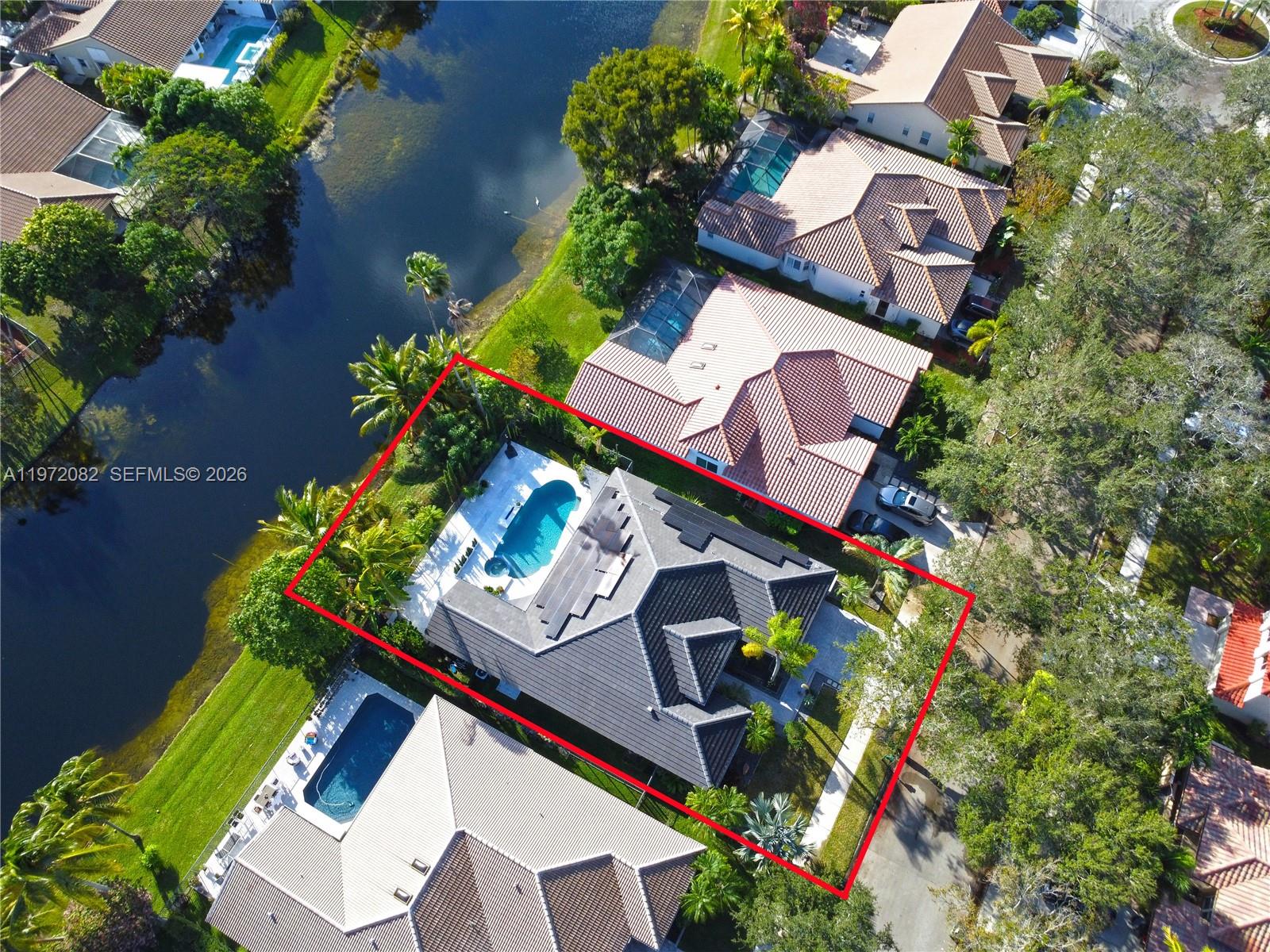 BACK ON MARKET! Your second chance to own this contemporary masterpiece in the prestigious gated community of Sunset Springs. Join us for an OPEN HOUSE this Saturday, February 28th! This fully furnished, smart-home sanctuary offers an unparalleled blend of modern luxury and tropical serenity. Step through the upgraded front entrance into a light-filled interior featuring porcelain tile floors, designer accent walls, and upgraded light fixtures. The open-concept layout is complemented by motorized window treatments and high-end finishes throughout. The kitchen flows seamlessly to an entertainer’s dream backyard. Enjoy a resort-style heated salt pool and jacuzzi, two fire features, and a premium outdoor BBQ kitchen with a bar and wine fridge—all overlooking peaceful lake views. The property is a private tropical orchard, featuring mature Mango, Fig, Papaya, Avocado, and Kiwi trees, accented by Italian Cypresses and custom landscape lighting.Built for efficiency and peace of mind, the home includes a full solar system, EV charger, hurricane impact windows (4 yrs), a new flat tile roof (2 yrs), and new AC (2.5 yrs). The garage features custom storage, closets, and a second refrigerator. This turnkey, waterfront gem in one of Weston’s most verdant communities won’t last long again. WE SEE YOU AT THE OPEN HOUSE THIS SATURDAY 28 FROM 11AM-4PM