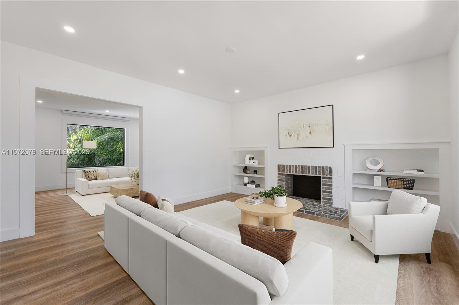 A South Miami home that checks all our favorite boxes – renovated, charming, walkable, with a pool – for under $1.85M! This reimagined Old Spanish home is turnkey and ready to welcome its new chapter. Walk to top restaurants and boutiques or lounge at home in inviting indoor and outdoor spaces. Sunlight spills into warm, open living areas including family room with picture window, formal dining room, large foyer, and living room with original fireplace. The kitchen offers room for a breakfast area plus access to the lush backyard, terrace, and pool with spa. Enjoy the same tropical view from a private balcony off your generous primary suite with vaulted ceiling and walk-in closet. New septic tank and drain field, impact windows/doors throughout, and 2021 roof add substance to style here. Some photos virtually staged.
