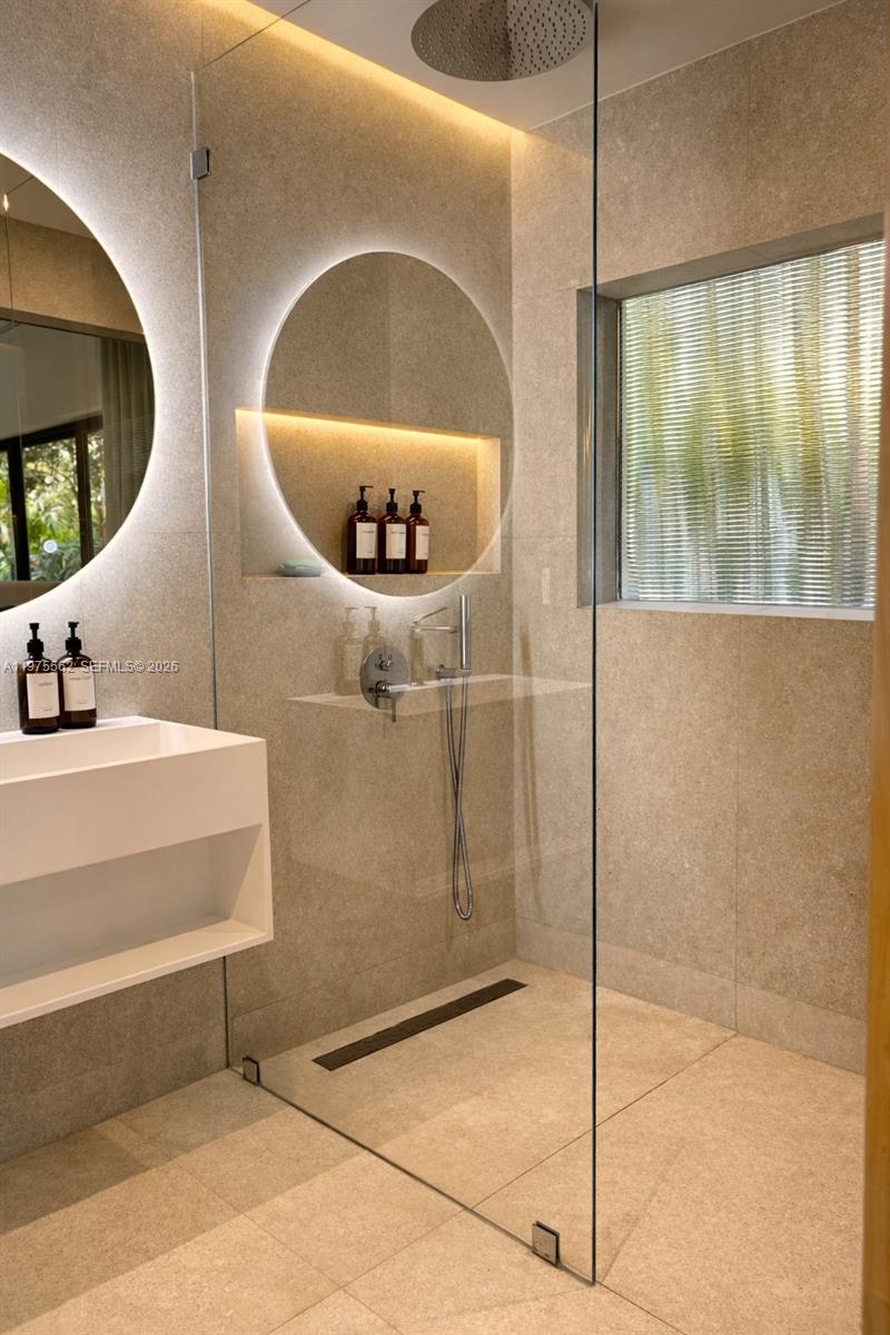Villa Frida | Design-Forward Living in the Heart of Miami Shores. Fully reimagined and flawlessly executed, Villa Frida delivers the rare combination of architectural character, modern upgrades, and effortless indoor-outdoor living. This oversized two-bedroom, three-bath mid-century residence spans nearly 1,500 SF of beautifully curated living space. The open-concept layout features two generous living areas, dedicated dining, and a sleek designer kitchen — all anchored by a dramatic wall of sliding glass doors that opens to private tropical gardens and dual wood entertaining decks. The layout lives larger than expected. Each bedroom is an expansive ensuite retreat with its own full bath, complemented by a third full guest bathroom — offering flexibility rarely found in this segment of the Shores market. Premium Features Include: Full impact windows and doors; Large-format rectified porcelain flooring; Custom paneled feature walls with LED accent lighting; Designer kitchen with new appliances; Spa-inspired modern baths; Custom Closets; Updated plumbing and electrical; Newer HVAC and ductwork; Dedicated laundry room; One-car garage; Lush, low-maintenance landscaping; Non-flood zone location. Positioned adjacent to downtown Miami Shores’ cafés, dining, and boutiques, this home offers convenience, design integrity, and turnkey peace of mind. For buyers seeking a thoughtfully designed, move-in-ready home in one of Miami’s most desirable neighborhoods — Villa Frida stands apart.