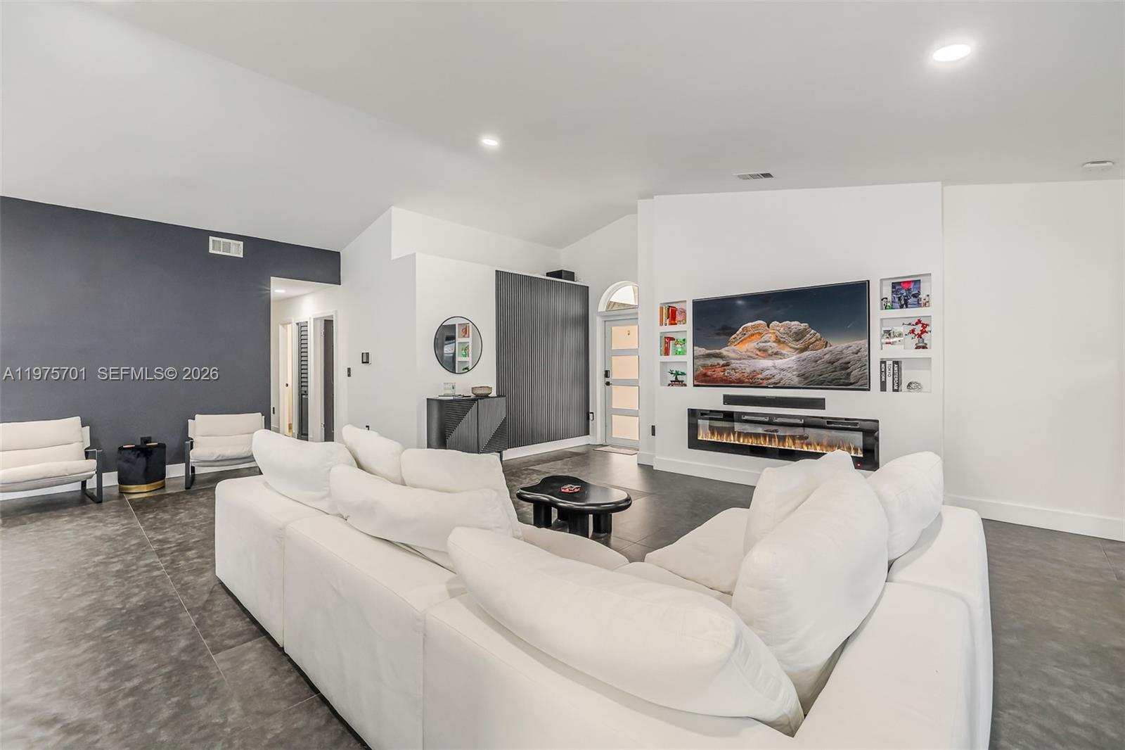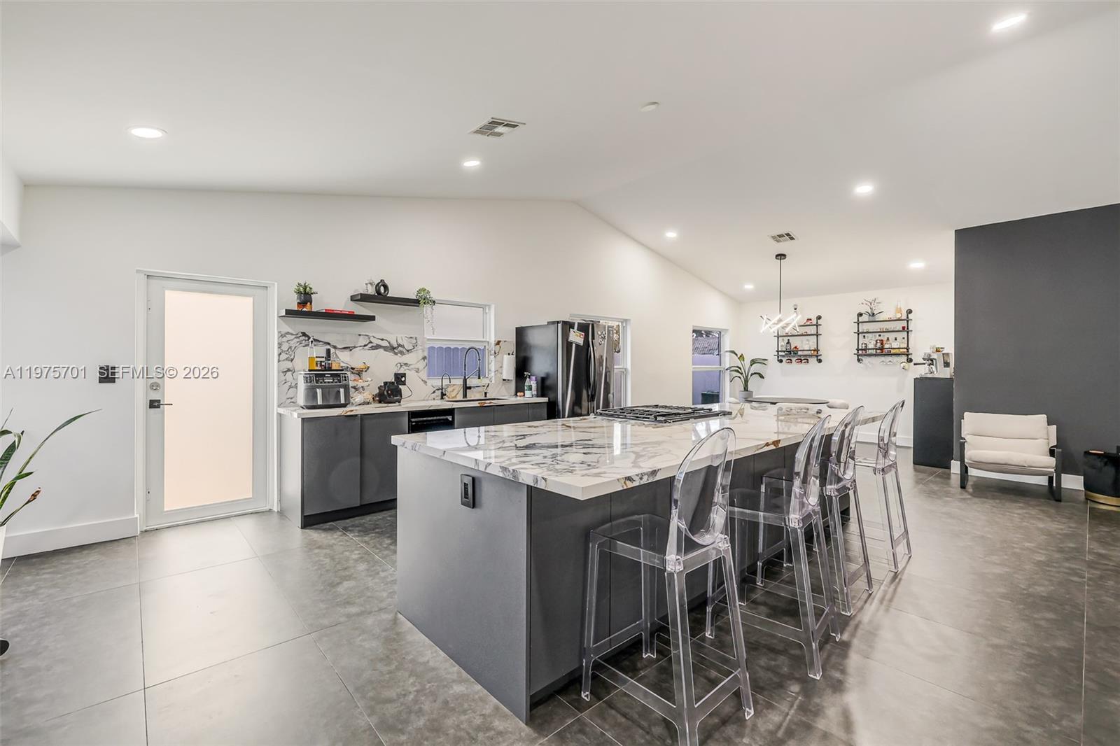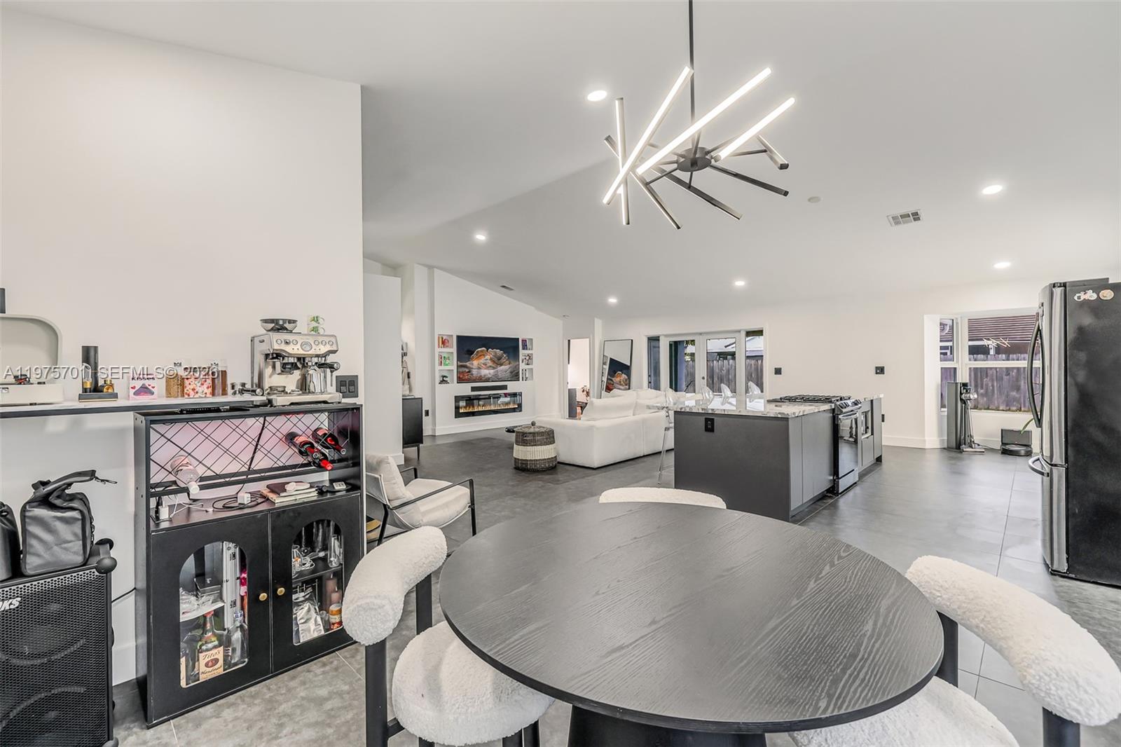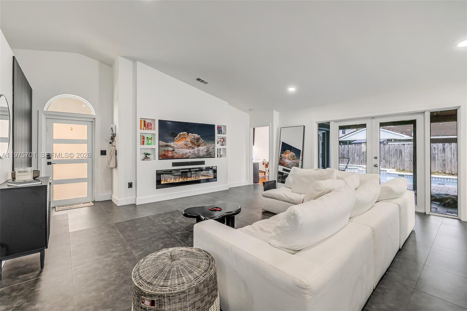 Fully remodeled with sleek, modern finishes, this home centers around a 12-foot kitchen island perfect for entertaining. The main living area includes a custom-built entertainment wall with fireplace and mounted TV - both included in the sale. Enjoy seamless indoor-outdoor living with a private pool, complemented by hurricane impact windows throughout. Ideally located in Lago Mar, the heart of West Kendall.