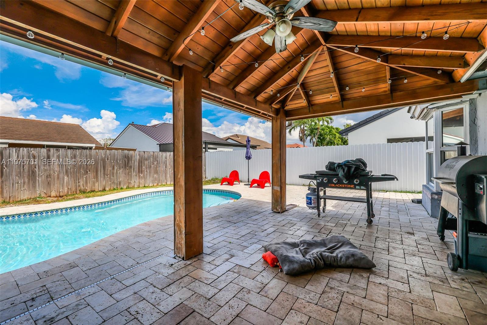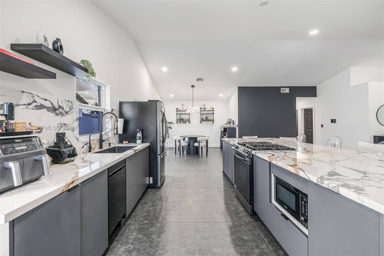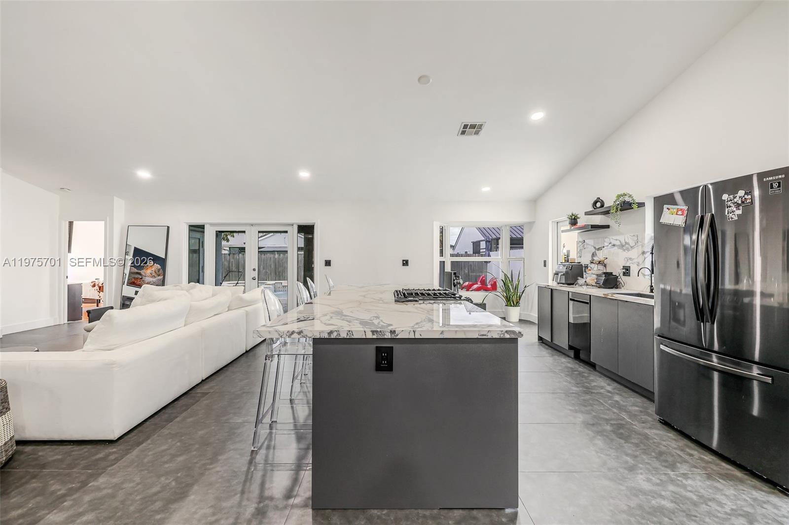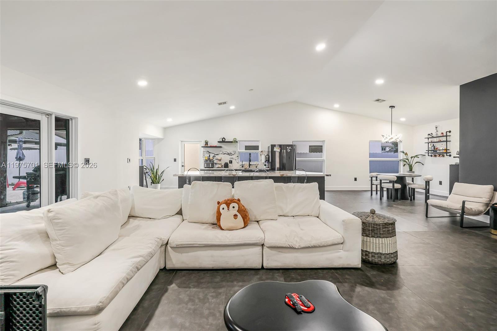 Fully remodeled with sleek, modern finishes, this home centers around a 12-foot kitchen island perfect for entertaining. The main living area includes a custom-built entertainment wall with fireplace and mounted TV - both included in the sale. Enjoy seamless indoor-outdoor living with a private pool, complemented by hurricane impact windows throughout. Ideally located in Lago Mar, the heart of West Kendall.