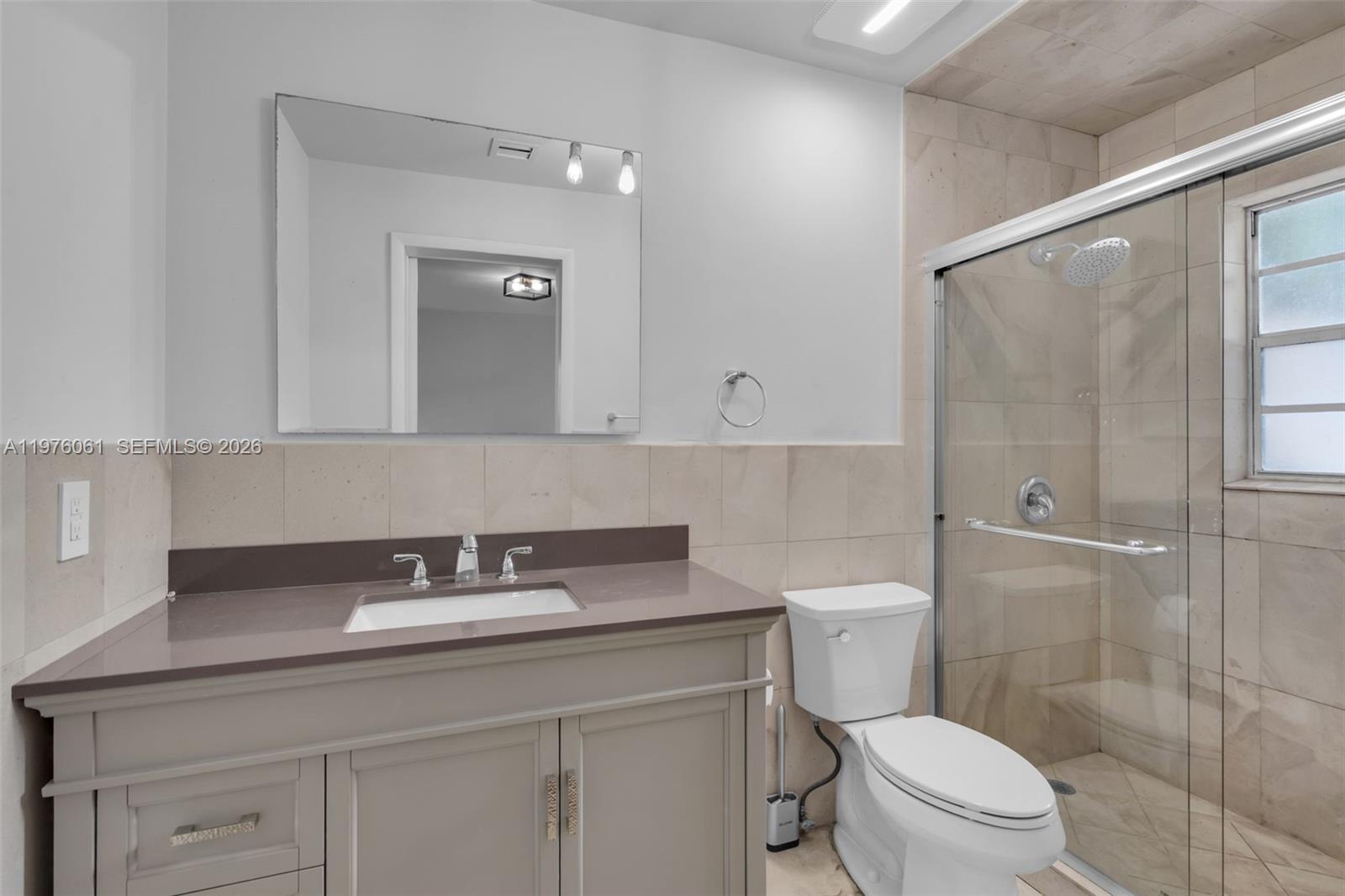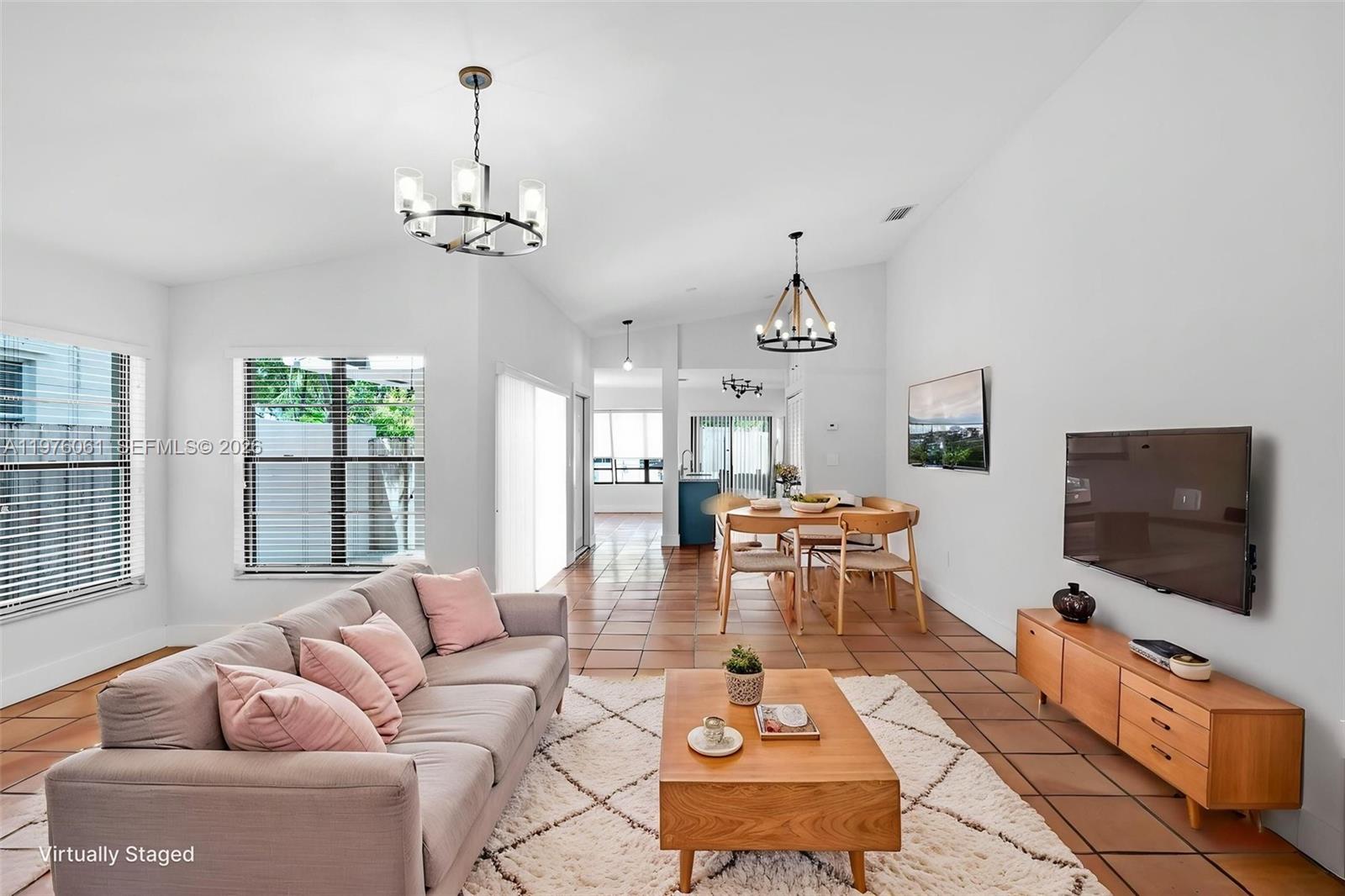Fully upgraded and move-in ready 2-bedroom, 2-bath half duplex in highly desirable Coconut Grove. This beautifully renovated home was completely updated in 2020, including a new roof (October 2020), offering peace of mind and modern comfort throughout. Step inside to an open-concept floor plan with soaring high ceilings that create a bright and airy living space. The updated kitchen features granite countertops, stainless steel appliances, and ample cabinetry — perfect for everyday living and entertaining. Spanish tile flooring runs throughout the home, adding warmth and character. Both bathrooms were fully renovated with new vanities, shower, tub, and toilets. Electrical system has been completely redone, including panel, outlets, switches, and lighting fixtures. Enjoy outdoor living in your private, fully fenced backyard featuring tile and artificial turf for low-maintenance upkeep. Additional features include a Wyze outdoor floodlight system and a termite tent treatment completed in 2020. No HOA, no maintenance fees, and no approval process required. Note: Shed is excluded from the sale.