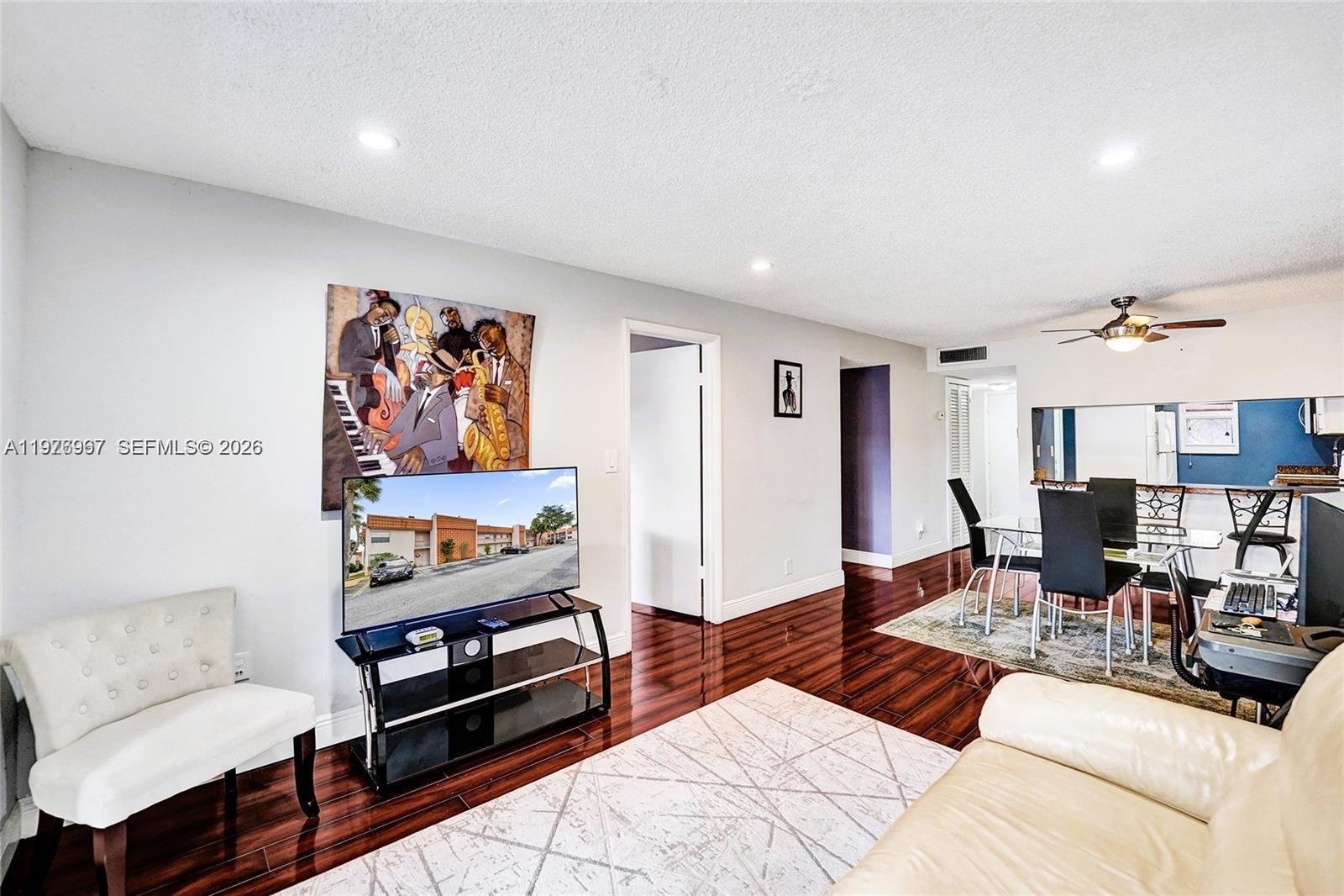 Stunning corner unit on the top floor. 2 bed 2 bath unit in Davie featuring impact windows, LED lighting,elegant wood laminate flooring, an open kitchen with granite counter-tops, a spacious en-suite primary with walk-in closets, and an inviting community pool. Elegantly updated and meticulously cared for by the seller.