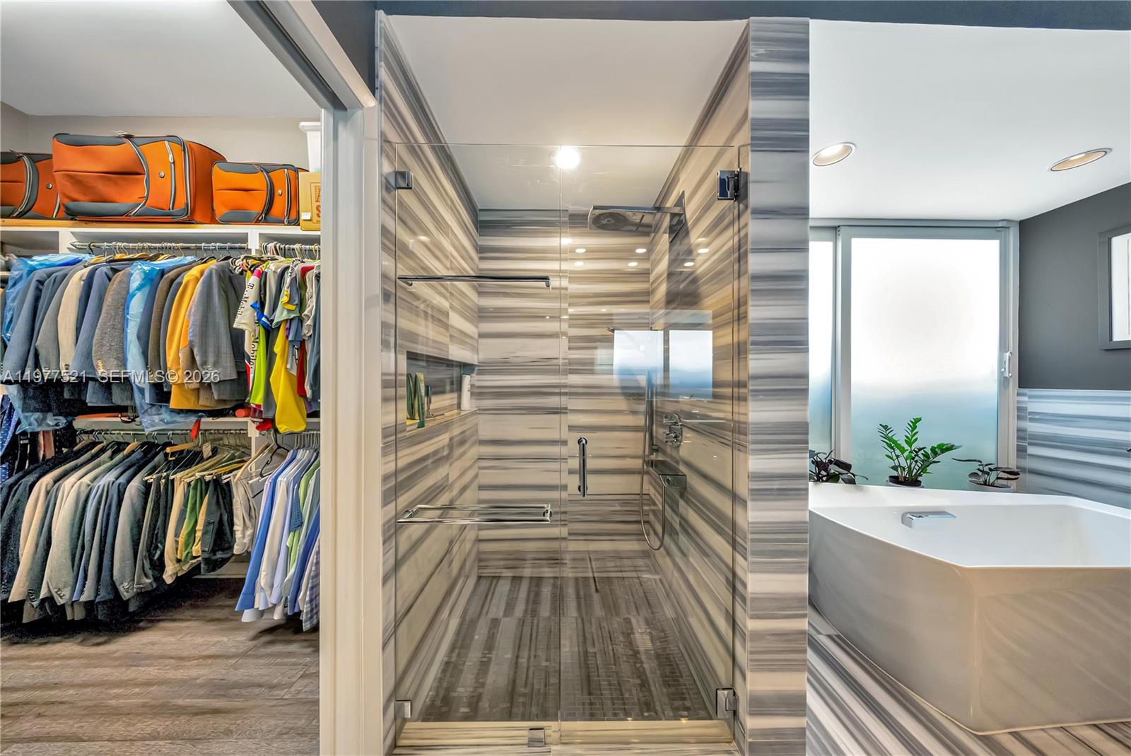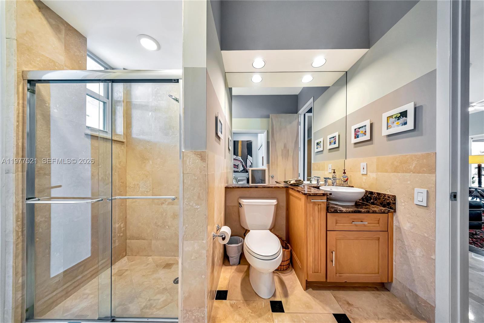 Ideally located on a spacious corner lot in the sought-after community of The Falls, this meticulously maintained residence offers a perfect blend of luxury and high-end functionality. High ceilings throughout create an airy, expansive feel, complemented by an interior that transitions from elegant, classic, light, travertine in the main living areas to stylish vinyl flooring in the bedrooms and living room. The gourmet kitchen is a chef’s dream, featuring unique Carrara quartz countertops, a 48” Jenn-Air built-in refrigerator, and a 36” Thermador six-burner propane gas range top. High-performance appliances include Bosch double ovens, a convection microwave speed oven, and a warming drawer, alongside a stainless-steel Samsung dishwasher and a 27-bottle Darby wine cooler. The primary suite serves as a true retreat, featuring a spacious closet and a primary bathroom highlighted by a 72-inch standing soaking tub. Structural integrity and efficiency are paramount, with a durable metal roof and full protection provided by impact windows, doors, and a reinforced garage door. For the automotive enthusiast, the air-conditioned garage with a available car lift, offering both comfort and utility. Outside, the circular driveway provides ample parking, while the outdoor oasis features a sparkling pool and a covered terrace—the ideal shaded retreat for overlooking the water. Call for a showing today.