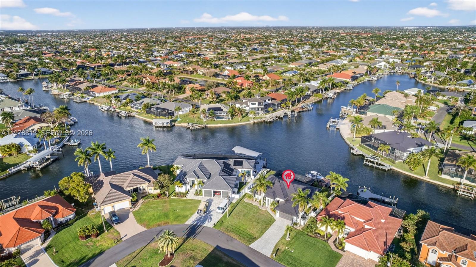 Stunning Gulf-Access 4BR Pool Home in Highly Sought-After SW Cape Coral * Experience the ultimate SW Florida lifestyle in this beautifully renovated 4BR/2BA Gulf-access pool home situated on an oversized .25-acre lot in one of the most desirable neighborhoods of SW Cape Coral. Perfectly positioned on intersecting canals, the property offers wide-water views, frequent visits from manatees, and even the occasional dolphin. BOATER'S DREAM: Gulf access * Dock w/wrapped pilings (2023) * Boat lift with new motors (2025) * Seawall * Minutes to Cape Harbour, Rumrunners, and The Westin—ideal for brunch, waterfront dining, and sunset cruising. FULLY RENOVATED IN 2023—BRIGHT, MODERN, AND MOVE-IN READY: 9.5' ceilings *LVP flooring * Recessed lights * Triple-panel stacking sliders. GORGEOUS CHEF'S KITCHEN: New soft-close cabinetry to ceiling * 9-foot quartz waterfall island * SS appliances * Open-concept, split BR floorplan. RESORT-STYLE OUTDOOR LIVING: Heated pool * Pool pump (2026) * Picture-window screened pool enclosure (2023) * Fenced yard with puppy pickets. LUXURIOUS MASTER SUITE: Spacious bedroom w/water views * Spa-like bathroom featuring a freestanding soaking tub & large shower w/36-inch wall-tile surround, double vanity * Walk-in closet. ADDITIONAL FEATURES: New standing-seam metal roof (2023) * gutters and soffits (2024) * Electric shutters for windows & doors * Water heater (2025) * Garage door motor replaced (2023) * Painted inside & outside (2023) * Furniture negotiable