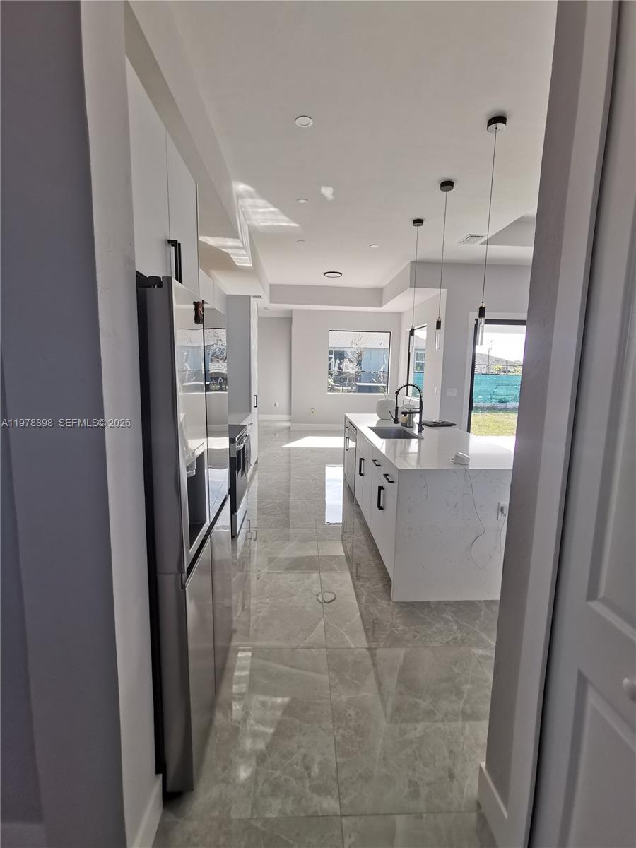 Look no more! Stunning 4 spacious bedrooms, 3 luxurious bathrooms, and an undertrust 2-car garage. The kitchen offers granite countertops, stainless steel appliances, and soft-close cabinetry. Elegant tile flooring runs throughout the home, offering both durability and easy maintenance. High ceilings, ceiling fans in every room, and energy-efficient LED lighting create a bright, airy ambiance throughout the living spaces. Designed with comfort and security in mind, the home is equipped with impact-resistant windows and doors featuring Low-E energy-efficient glass, enhancing safety while helping keep electric bills low. A modern high-tech security camera system is also included for added peace of mind. The master bedroom offers a his-and-her walk-in closet and a spacious master bathroom, while the other three bedrooms are also equipped with large closets. There is a utility room for your convenience. The paved driveway leads to a spacious, under-roofed two-car garage, offering ample storage and parking space. The outdoor kitchen hookups make entertaining effortless, while the nearby boat ramp provides convenient access to the water. With restaurants just a short distance away, you’ll always have a variety of dining options to enjoy. Don't miss out on this incredible opportunity to own a piece of paradise in this desirable neighborhood. Discover the place you’ll love to call home and begin living the life you’ve always imagined. Schedule your private tour today! ¡HABLO ESPAÑOL!