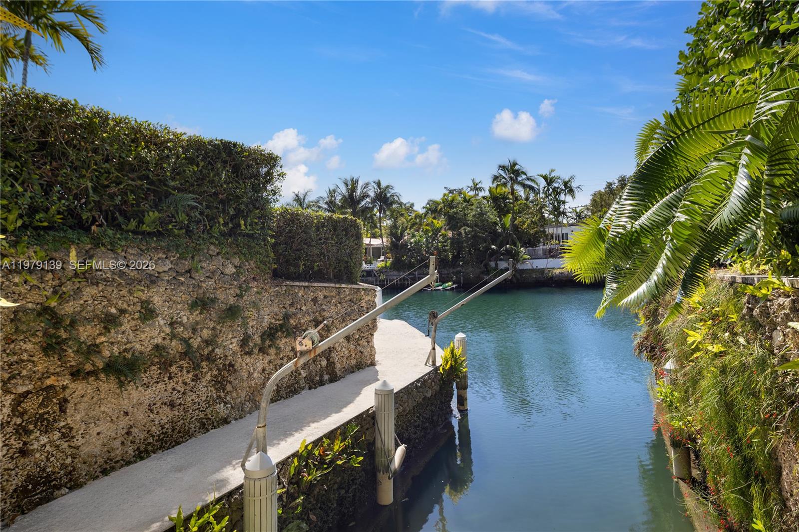 A classic Florida-style residence enjoys sweeping views across the widest bend of the canal, where tranquil water vistas and lush surroundings create a truly picturesque setting. Resting atop a natural bed of exposed coral rock along the dock, the home reflects the timeless character of South Florida’s coastal architecture, gracefully positioned along 90' of waterfront on the Coral Gables Waterway. 3 bedrooms + den and 4 bathrooms, light-filled interiors are framed by expansive picture windows that invite the outdoors in, bathing the home in natural sunlight throughout the day. Painted concrete and wood floors lend a relaxed yet sophisticated coastal aesthetic, while a thoughtfully designer-curated interior creates polished, picture-perfect living. In 2015, the residence underwent a comprehensive renovation including updated plumbing, electrical, the enclosure of the garage to enhance the home’s livable space. Roof installed within the past 3 years. For boating enthusiasts, the property features a rare grandfathered boat cutout and a dock with storage shed. This exceptional property offers a rare opportunity to experience classic Florida waterfront living with thoughtful modern updates in a serene, light-filled setting. Not located within a flood zone. As seen in LUXE Magazine.