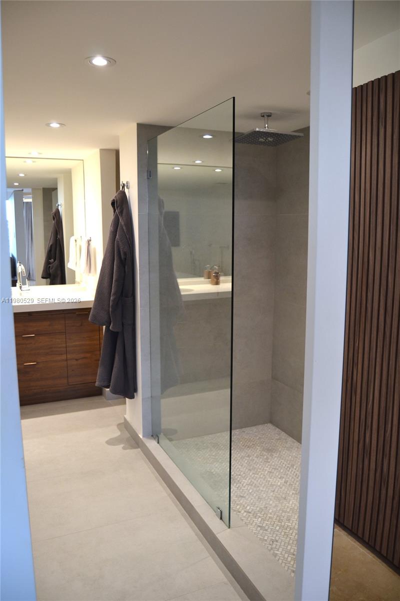 Beautifully fully remodeled luxury corner residence offering 2 bedrooms, 2 full bathrooms plus a guest bathroom, located in an exclusive waterfront building. Modern open layout with over $200,000 in upgrades including marble floors throughout, upgraded electrical wiring and plumbing, fully dimmable recessed lighting, integrated Bose surround sound system, and smart app-controlled A/C with modern diffusers for optimized airflow. Contemporary kitchen features white quartz countertops, stainless steel appliances, and a dedicated wine and beverage refrigerator. Enjoy a wraparound balcony with newly installed flooring enhancing durability and outdoor aesthetics, offering panoramic Biscayne Bay views ideal for relaxing or entertaining. Custom-built spacious closets throughout and flexible space perfect for home office or studio. Full-size washer and dryer conveniently located in a dedicated laundry area with additional storage space. Additional features include covered assigned parking and private storage. Residents enjoy resort-style amenities including bayfront pool, state-of-the-art fitness center, sauna, renovated lobby and social areas, and 24-hour security. Ideally located near beaches, Aventura, Bal Harbour, dining, shopping, and major highways. Turnkey luxury waterfront living.