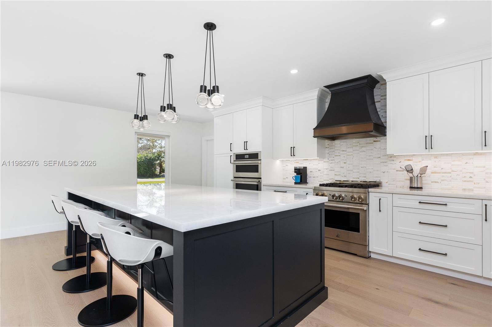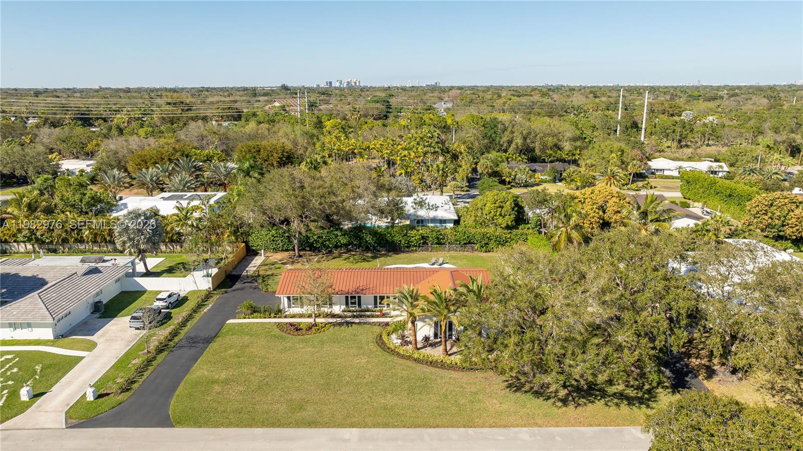Step into unparalleled luxury with this fully remodeled 4-bedroom, 4-bath home on a half-acre lot in a tranquil, park-like setting. Designed for modern elegance and effortless entertaining, the residence features two expansive primary suites, perfect for multigenerational living or pampered guests. Sunlight streams through impact hurricane windows, while a metal roof and new A/C ensure comfort and peace of mind. Gleaming engineered wood floors flow throughout, complemented by new PVC waste lines and high-end finishes. The gourmet chef’s kitchen is a true centerpiece, with custom cabinetry, a dramatic 10-foot quartzite island, a designer vent hood, two dishwashers, two refrigerators, and dual ovens—one gas, one electric—ideal for hosting family and friends. Bathrooms shine with premium Toto toilets, including two with bidets. Every room offers custom closet organizers and electric blinds, while EV-ready infrastructure adds modern convenience. Outside, enjoy a newly refinished Diamond Brite pool framed by lush landscaping, with an automatic sprinkler system maintaining the grounds. This home effortlessly blends indoor elegance with outdoor living, offering a private oasis that embodies upscale South Florida lifestyle. Move-in ready and crafted for those who appreciate sophistication, comfort, and entertaining at the highest level.