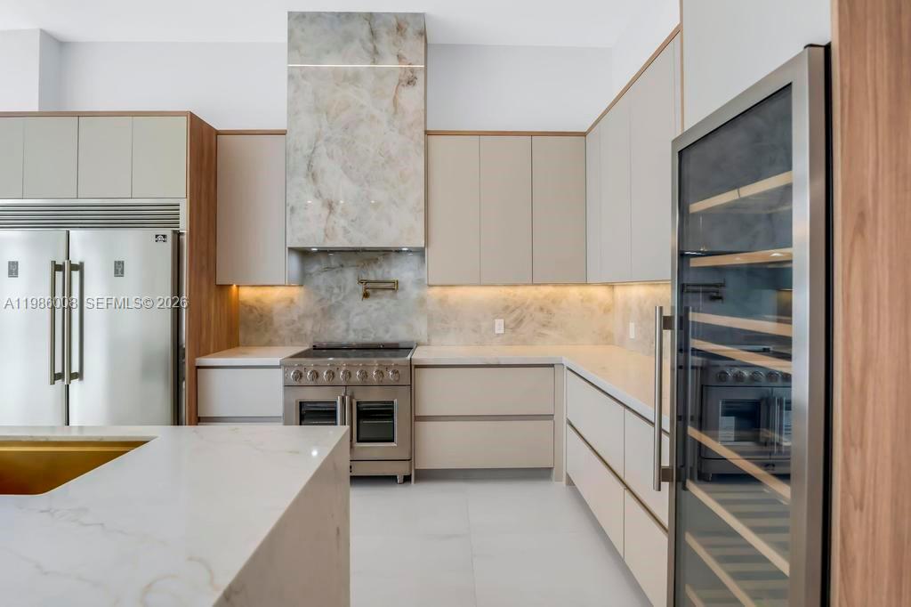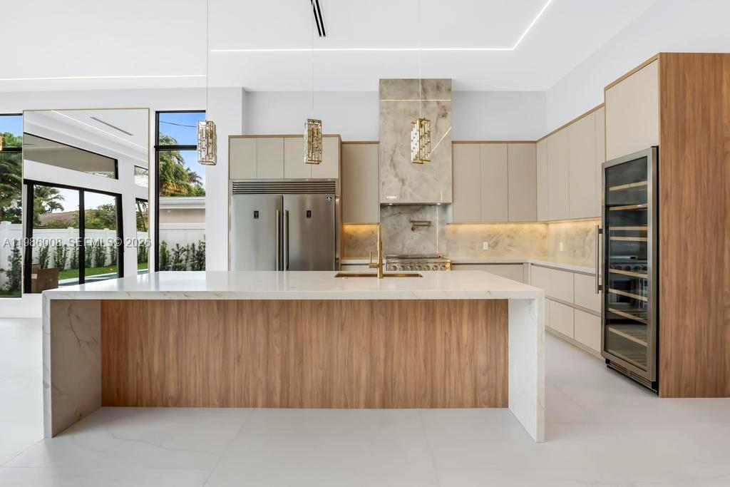 BRAND NEW CONSTRUCTION JUST BUILT 2026 in the desirable Lake Placid section of Lighthouse Point. This 4-bedroom plus office residence offers 3,831 total square feet (3,134 under air) with a two-car garage, 12-foot ceilings throughout and a 16-foot grand entry. The split floor plan features four ensuite bedrooms, including a spacious primary suite with dual walk-in closets. Finishes are thoughtfully selected, featuring Brazilian porcelain tile (Portobello), Brazilian tile bathrooms, Italian porcelain exterior accents, Spanish tile in the entry and outdoor areas, and custom thermally modified wood feature walls with a 20-year warranty. The kitchen is designed for both function and style, stunning Taj Mahal quartz counter-tops and backsplash with premium cabinetry, soft-close and touch-close systems. All walk-in closets are equipped with integrated LED lighting. Additional features include EV charging readiness and a fireplace. Outdoor living is complete with a private pool, outdoor shower, and a fully covered, equipped summer kitchen designed for entertaining. Frank McDonough Park is just minutes away, offering a baseball field, football/soccer field, sand volleyball court, racquetball courts, adult fitness equipment, clay tennis courts, the Lighthouse Point Tennis Center with pro shop and lessons, as well as a covered playground, picnic areas, and restrooms. Located less than 10 minutes from the Beach!