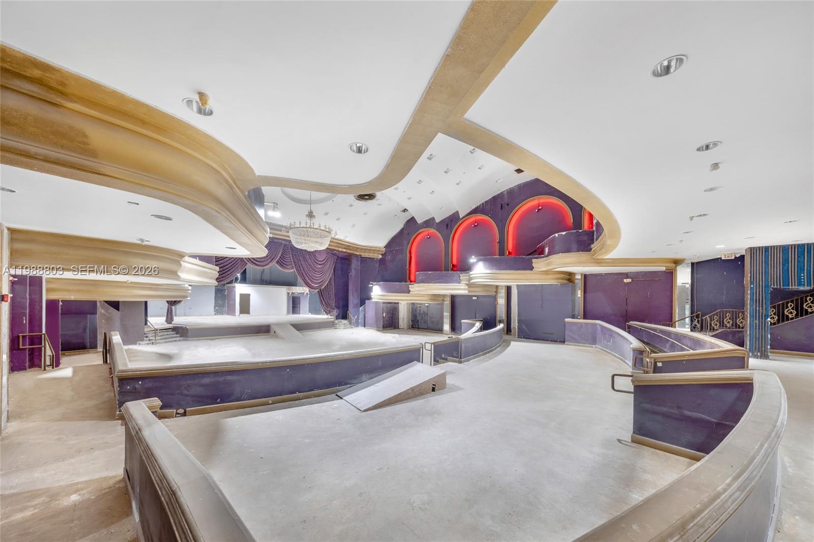 Located at 5445 Collins Avenue, the historic Playboy Theatre presents a singular opportunity to acquire 25,860 square feet of high-volume interior space in the heart of Miami Beach’s prestigious Mid-Beach corridor. Currently in a state requiring full renovation, the property serves as a premier "blank canvas" for a visionary developer or hospitality group. The existing structure features a triple-level layout with soaring ceilings and massive, open floor plates—architectural assets that are nearly impossible to replicate under current Miami Beach building codes. While the interior requires a complete overhaul, the "bones" of the venue, including the original grand stage and structural volumes, provide a robust foundation that significantly reduces the complexity of a ground-up build. With no association approval for business type; the property is uniquely suited for a flagship nightclub, live-performance theatre, or movie theatre where the expansive vertical clearance and existing stage infrastructure allow for world-class acoustics and immersive lighting design. A key operational advantage is the expansive kitchen area located parallel to the main theatre volume, which provides the necessary footprint for high-volume back-of-house operations. Positioned steps from the ocean in a high-barrier-to-entry market, this asset allows an investor to curate a marquee destination that captures the high-spending demographic of the Collins Avenue corridor.