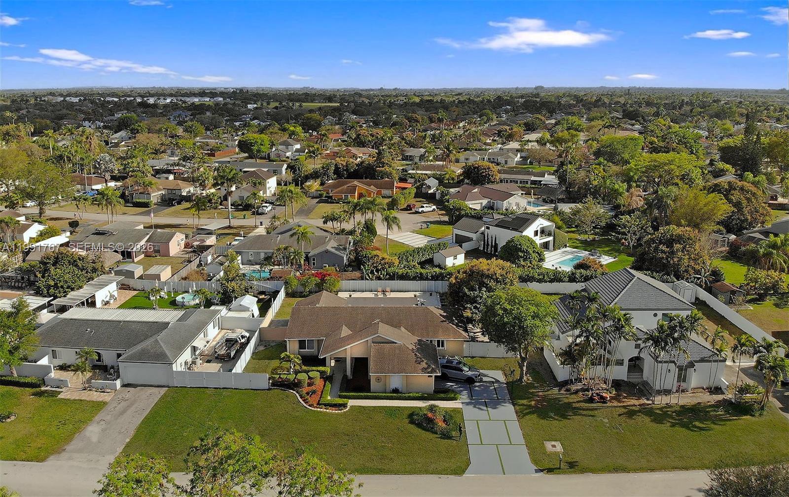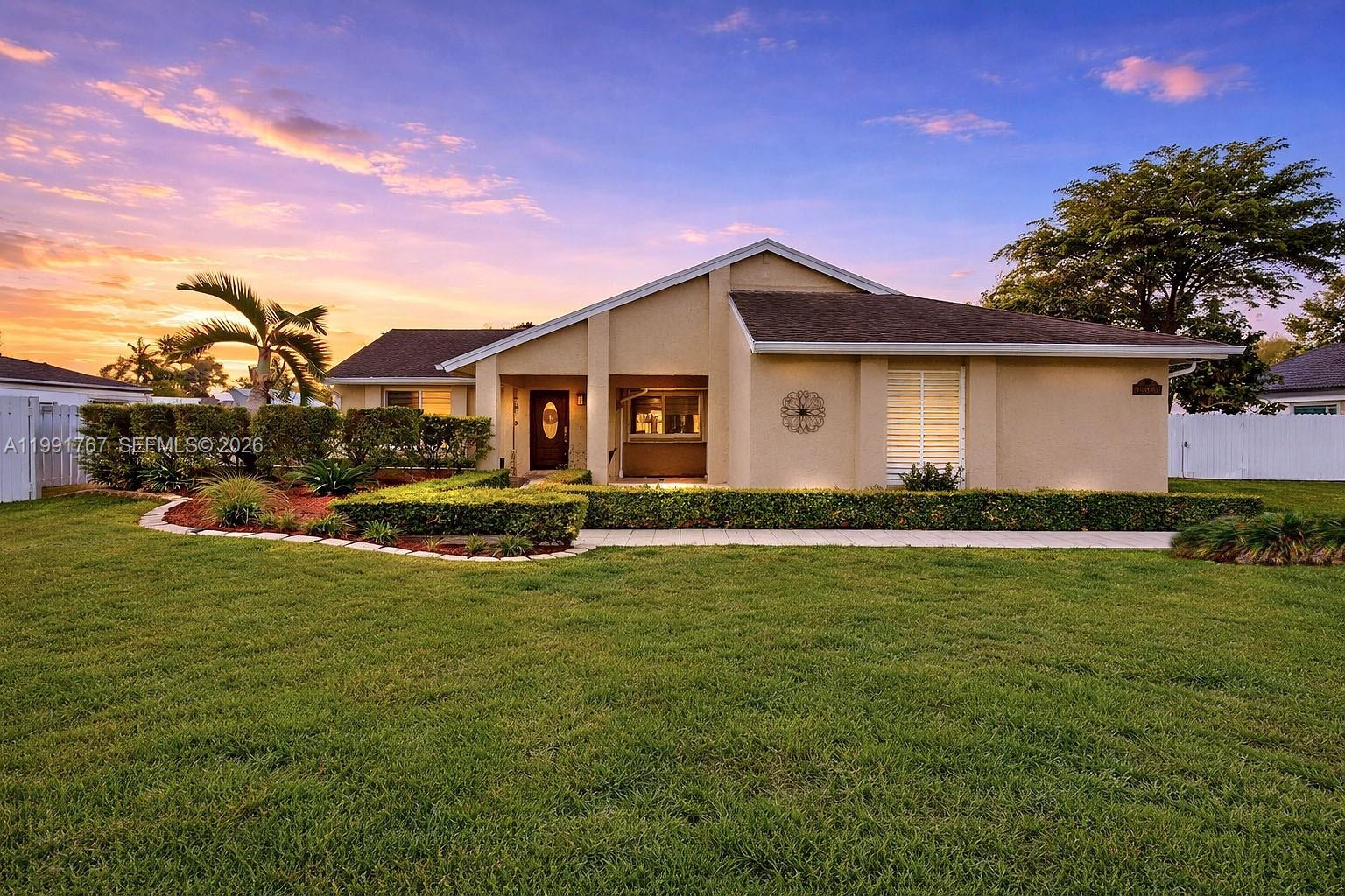 Welcome to your private South Florida retreat where space, privacy, and comfort come together. Situated on a 13,000 sq ft lot, this beautifully maintained 4 bedroom, 2 bath home features a versatile open space floor plan. Upgrades include 2019 roof, hurricane impact windows and doors, tankless water heater, remodeled kitchen and baths, and upgraded expansive driveway offering ample parking, newly upgraded pool and deck. Enjoy a stunning sunset oasis back yard with a mature mango and avocado tree. Oversized lot offers space for a boat, RV or future expansion. Includes a 2 car garage. Ideally located near top schools, shopping, dining, and major street & highways.