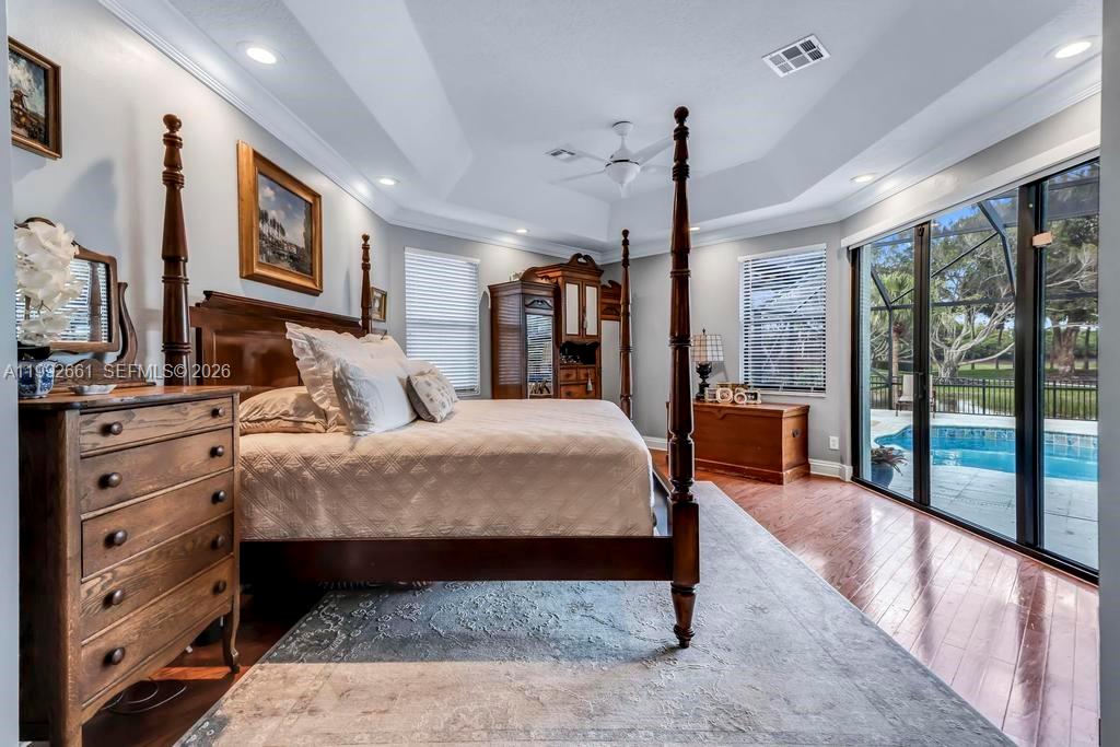 Stunning 5-bedroom, 4.5-bathroom estate featuring a grand entrance with soaring ceilings and an abundance of natural light throughout. The home offers elegant formal living spaces, including a cozy fireplace in the formal living room and a spacious dining area perfect for entertaining, along with a second expansive living room that provides plenty of space for relaxing or hosting gatherings. At the heart of the home is a chef’s kitchen designed for both function and style, complete with dual islands, stainless steel appliances, a spacious pantry, and an open layout that flows seamlessly into the main living area. Built for both comfort and peace of mind, the home is equipped with full hurricane impact windows and doors throughout, offering enhanced security, energy efficiency, and storm protection. The expansive primary suite serves as a private retreat with sliding glass doors leading to the backyard, oversized walk-in closets with custom built-ins, and a luxurious spa-like bathroom featuring a large walk-in shower. Guest bedrooms are thoughtfully positioned on the opposite side of the home, including a Jack and Jill bathroom for added convenience. The freshly painted exterior enhances the home’s curb appeal, while the backyard offers a true resort-style setting with travertine pavers, a sparkling pool, ample green space, a newer screened enclosure, breathtaking wide lake views, and a convenient outdoor half bathroom creating the perfect space to relax or entertain.