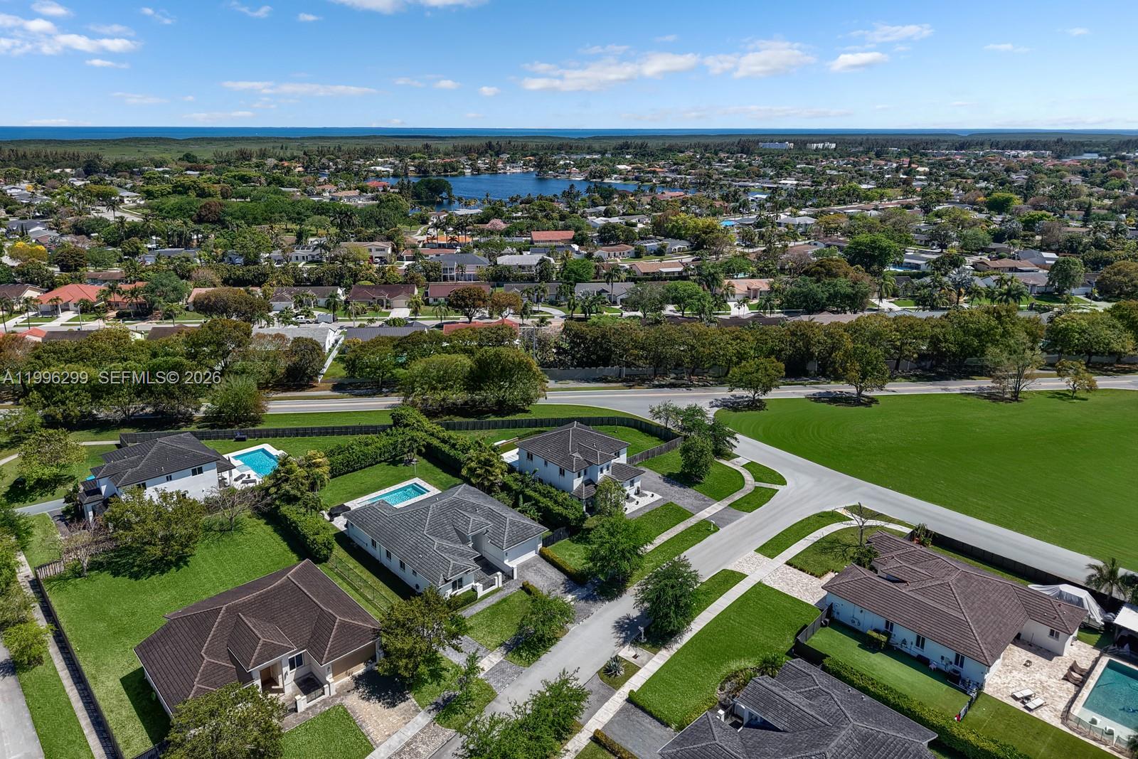 Welcome home! This stunning 4-bed, 4-bath single-family home offers 3,600 sq. ft. on an expansive 14,500 sq. ft. corner lot in the heart of Cutler Bay, just one block from Old Cutler Rd. Built in 2018 with no detail overlooked, 24x24 porcelain tile throughout, 10 ft. ceilings, crown molding and impact windows/doors. Open-concept kitchen features granite countertops, wood cabinetry, SS appliances, built-in wall oven and electric range. One bed/full bath on ground floor with direct access to the backyard pool area, perfect for guests and entertaining. Master suite upstairs boasts dual sinks with separate laundry room. 2-car garage. Enjoy your private oasis with a sparkling pool, outdoor kitchen, and oversized yard with room for your RV and Boat, just 3.5 miles/8 min from Black Point Marina. No HOA!