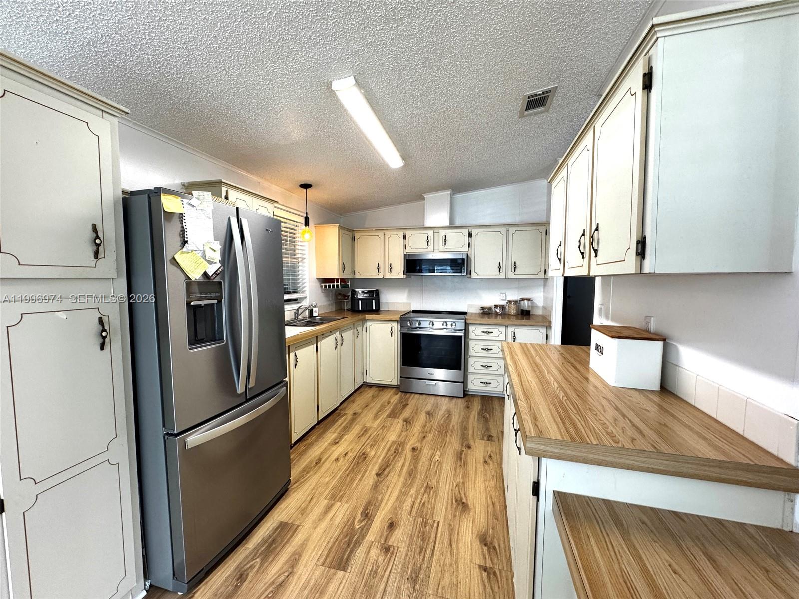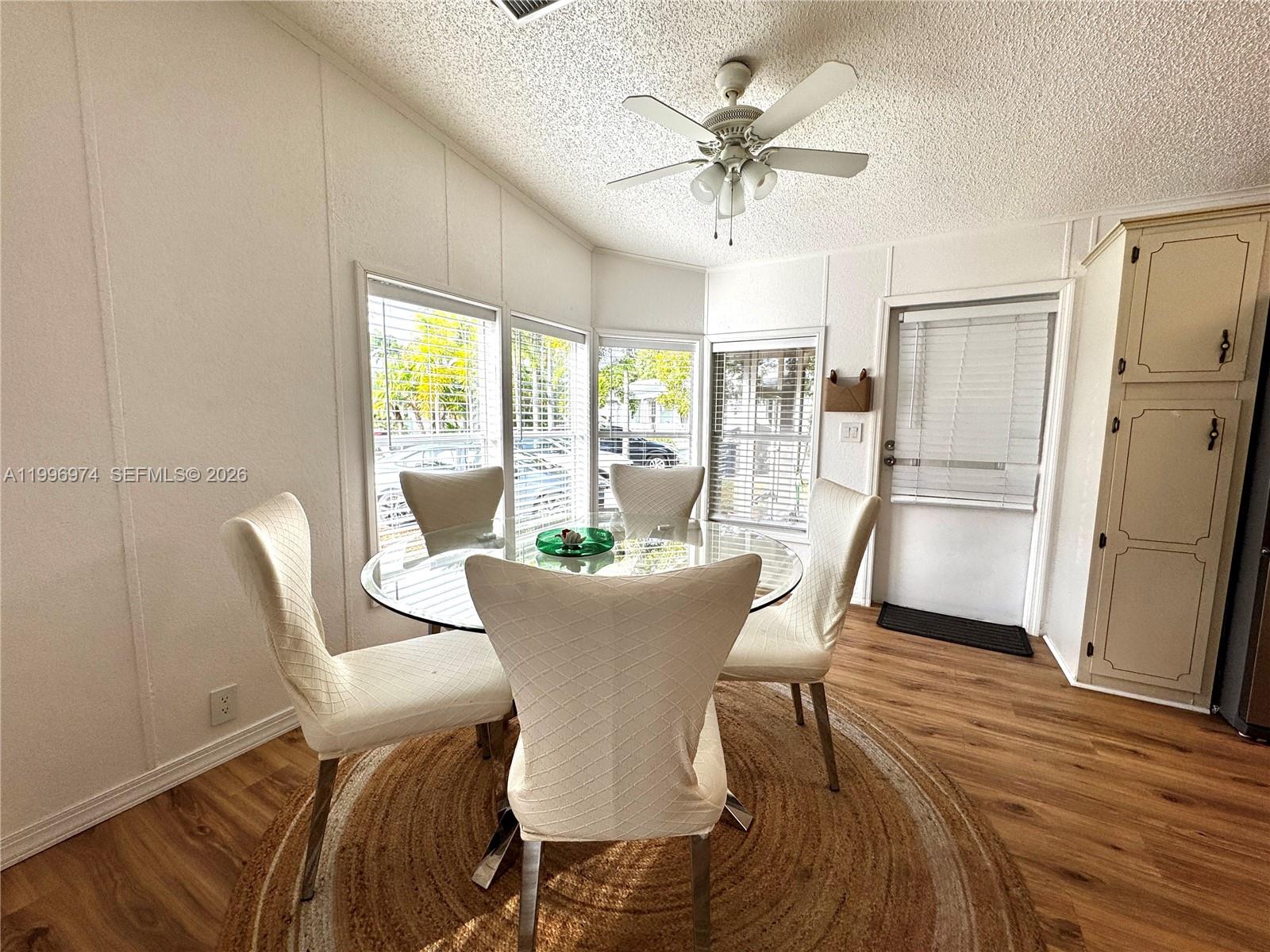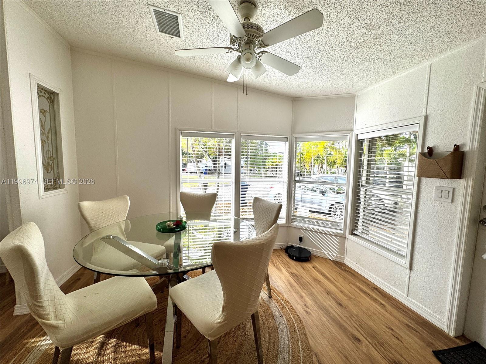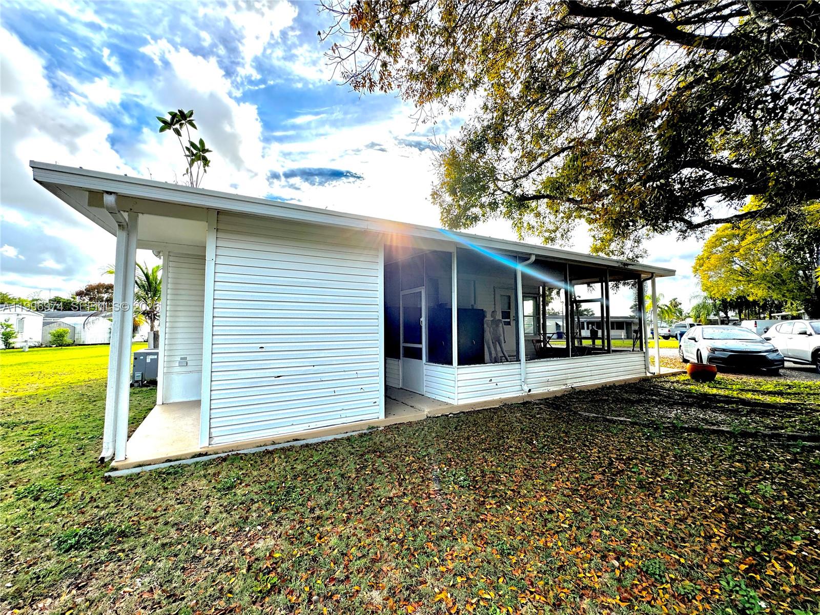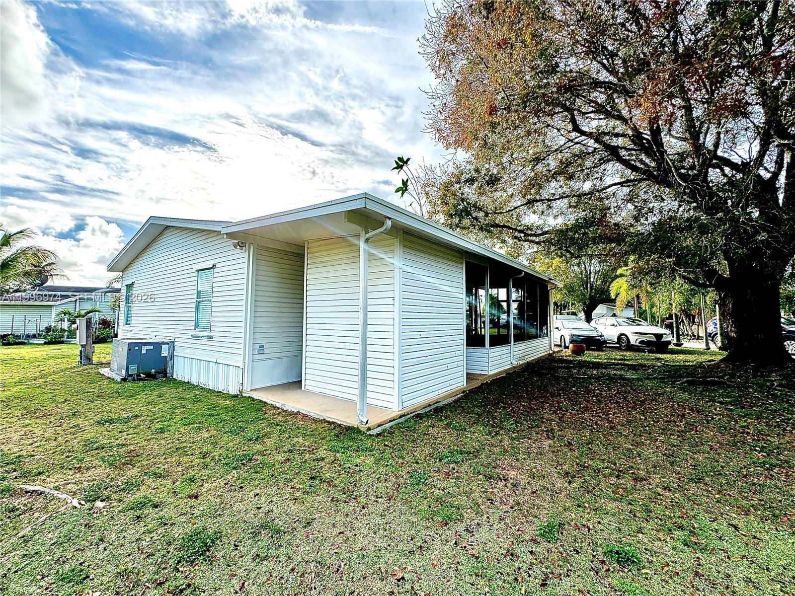 Bright and well-maintained 2-bedroom, 2-bath mobile home offering a bright and open layout with abundant natural light. Spacious living area with updated flooring throughout. Functional kitchen with ample cabinet space and stainless steel appliances. Dining area features beautiful bay-style windows, creating a warm and inviting atmosphere. Enjoy a large screened-in porch and covered outdoor area, perfect for relaxing or entertaining. Extended driveway provides ample parking space. Property sits on a solid concrete slab and features aluminum siding and skirting. A/C unit installed approximately 2013, using updated R-410A refrigerant. Quiet and well-maintained surroundings. All measurements are approximate and should be independently verified.