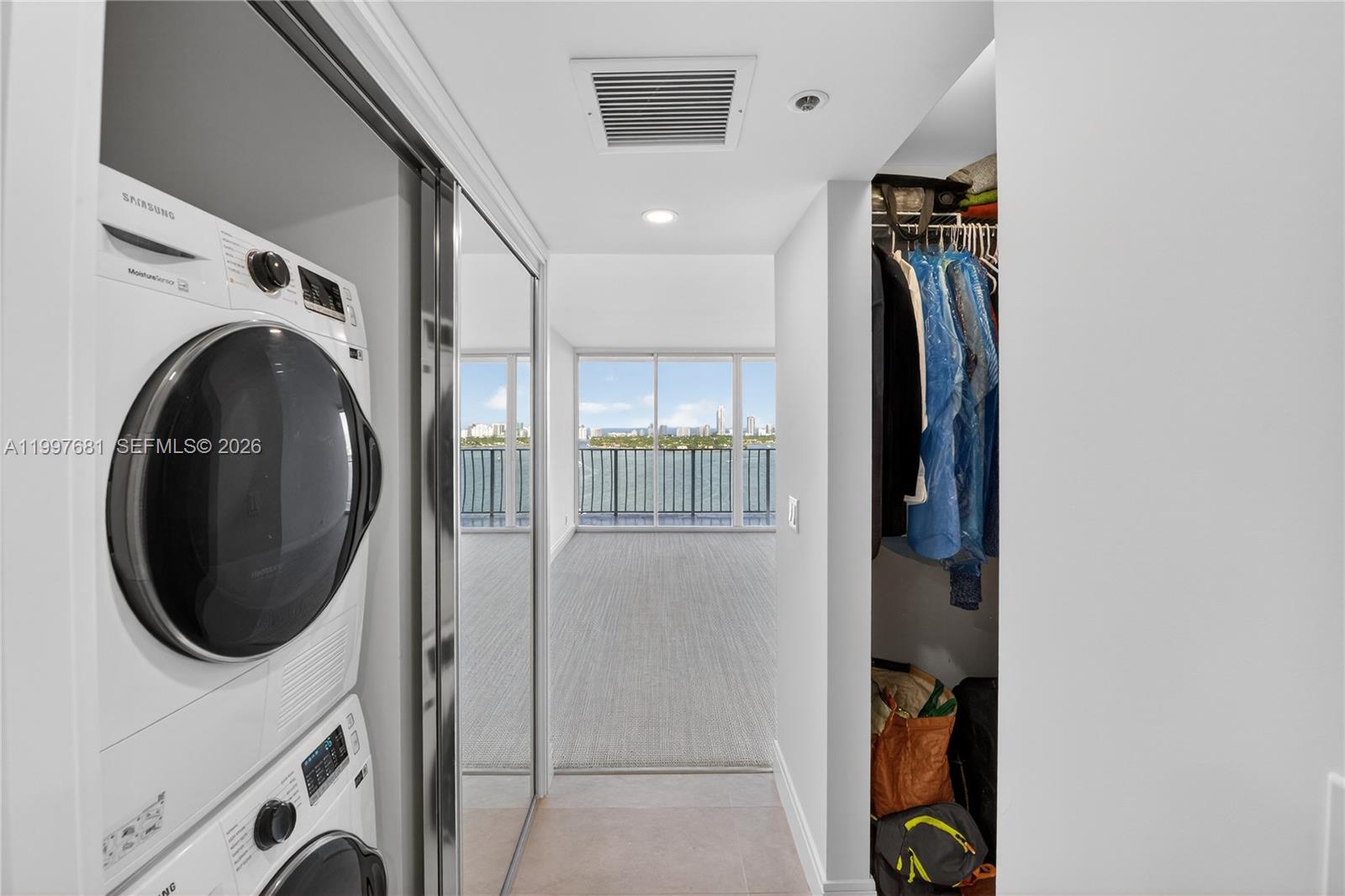 Beautifully maintained 2-bedroom, 2-bath waterfront residence in Grandview Palace’s most desirable line, offering sweeping east-facing views over the bay and Normandy Island. This split-plan layout is enhanced by high-end carpeting throughout the bedrooms and living areas, creating a soft, elevated feel that sets the tone from the moment you enter. Luxury pocket doors add flexibility and a more open-concept flow, while the full-width balcony spans the entire residence and is accessible from both bedrooms and the living room, allowing every room to connect to the view. The open kitchen features generous counter seating and flows comfortably into the main living space, while the in-unit washer and dryer add everyday convenience. Located in a full-service waterfront building with 24-hour security, pool, fitness amenities, marina, ground-floor shops and restaurants, plus two parking spaces.