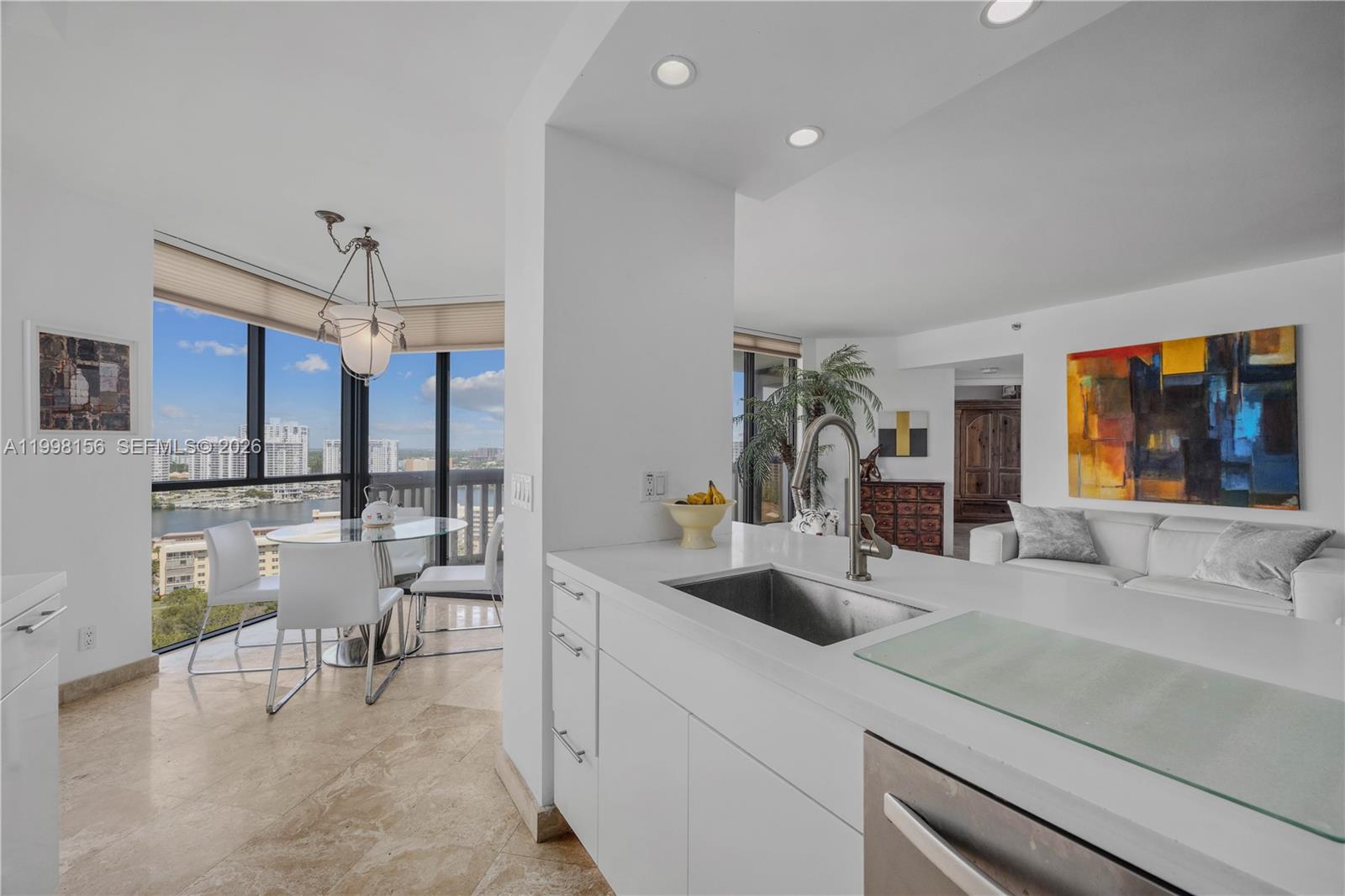 Beautiful, Relaxing Water Views from this 19th floor unit. Come sit on either of the two balconies and watch the boats go by, the fish swim below or just gaze at the amazing views from all directions. This 2 bedroom 2 bathroom, updated units boasts an open, updated kitchen with custom built pantry, marble floors, updated bathrooms, smooth ceilings and walls, walk in closets, split floor plan with full size washer/dryer in the unit. Jacuzzi tub and stand up shower in the master, water views form both bedroom. This building has its own pool, gym, hot tub, conference room, library, rec room with coffee and billiards. All this in the unmatched Luxury Resort Living on Williams Island. This Luxury Resort offers, great security with roving guards a 27,000 sq ft Spa, New Clubhouse with restaurants, Deli, Huge Gym, Classes, Outdoor pool, Indoor Pool, 15 Tennis courts, 4 Padel Court, Pickleball courts, pro shop, nail salon and more. Everything you could want for a luxury healthy lifestyle. Building has fully funded reserves. Call for your private tour.