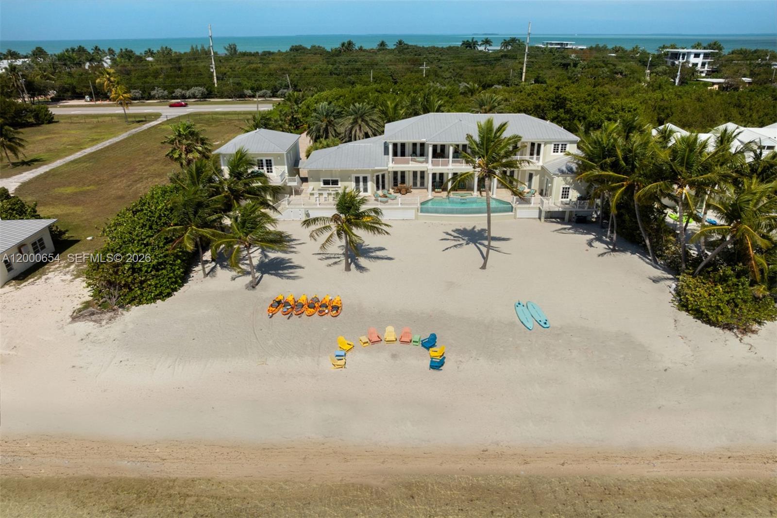 Set on 1.38 acres of pristine oceanfront in the Florida Keys, this private estate offers the perfect blend of luxury, serenity, and tropical beauty. With an enormous 150-foot private beach, this stunning 4,770-square-foot residence presents an unparalleled opportunity to experience the magic of oceanfront living.The home features five bedrooms and five and a half baths, including separate guest quarters for added privacy. Towering 30-foot ceilings create a grand, open atmosphere, while expansive windows frame breathtaking views of the Atlantic Ocean. Offered turnkey, this estate is move-in ready, with exquisite furnishings that complement its elegant design.Step outside to a resort-style infinity-edge pool with spa. A spacious two-car garage provides convenience, while the estate's zoning allows for weekly rentals, making it a remarkable investment opportunity.This property is more than just a home--it's a tropical oasis where you can kayak, fish, or build sandcastles right from your backyard. Whether you seek a family getaway or a primary residence, this estate offers the best of both worlds: a tranquil retreat surrounded by nature yet still within the comforts of the United States.