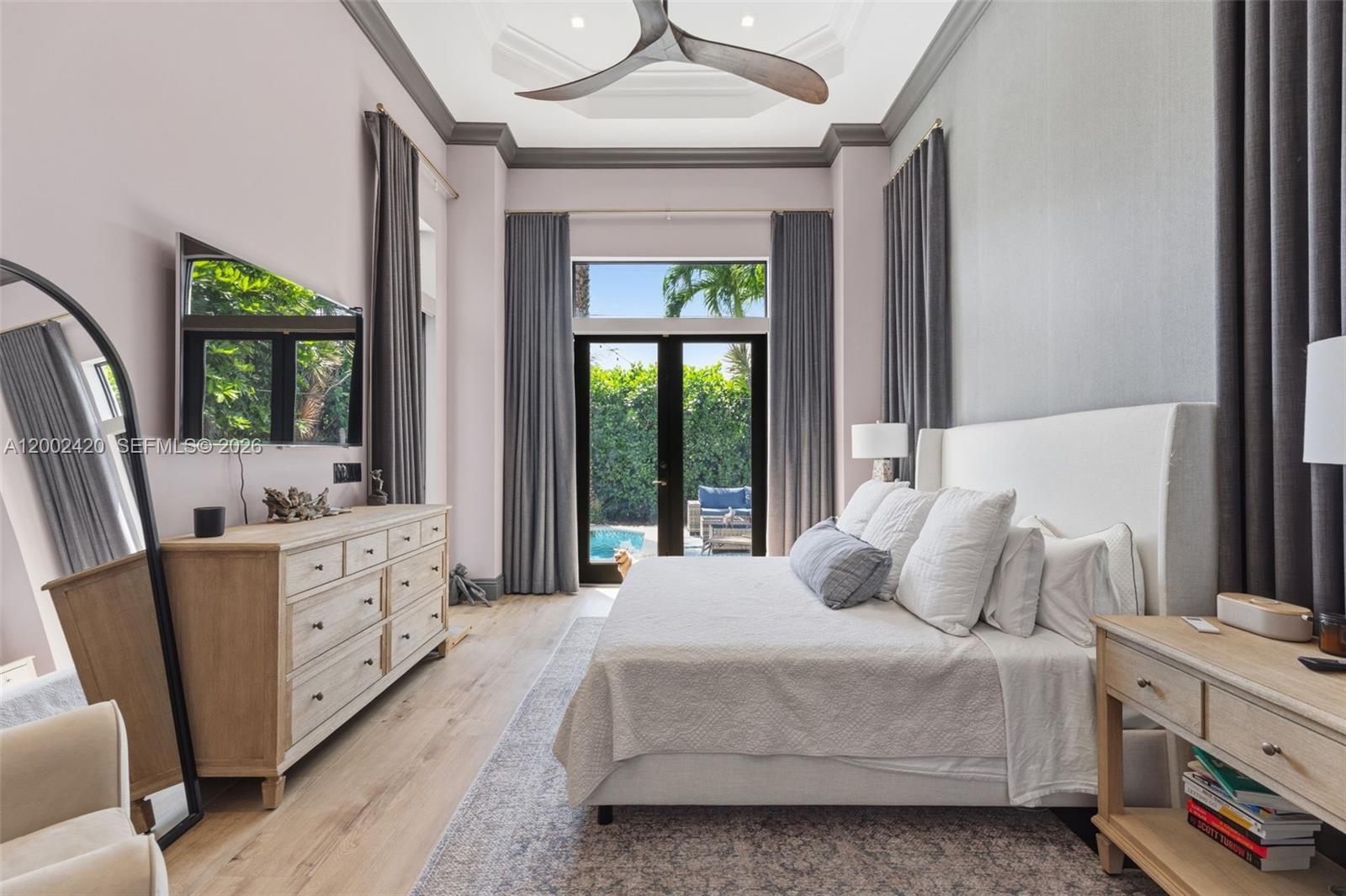 Experience modern South Florida living in this 2013-built 4BR/3.5BA executive pool home in highly sought-after Poinsettia Heights. With soaring 14'–15' ceilings and over 2,600 sq ft of refined living space, this residence offers a bright, open layout with walls of glass that seamlessly connect the indoors to the resort-style pool and patio. The chef’s kitchen features an induction cooktop, breakfast area, and generous cabinetry, flowing into spacious living and dining areas plus an additional family room. The expansive primary suite includes two walk-in closets and a spa-inspired bath with separate tub and shower. A triple-split floor plan provides exceptional privacy: an en-suite second bedroom, two additional bedrooms, and a third full bath. Additional features include a large laundry room, powder room, 2-car garage, and abundant closet space. Outside, lush landscaping surrounds the 28' pool, covered entertaining area, and outdoor shower. Tucked away in Poinsettia Heights yet minutes from Downtown, Las Olas, the beaches, and Wilton Manors, this property is a rare find.