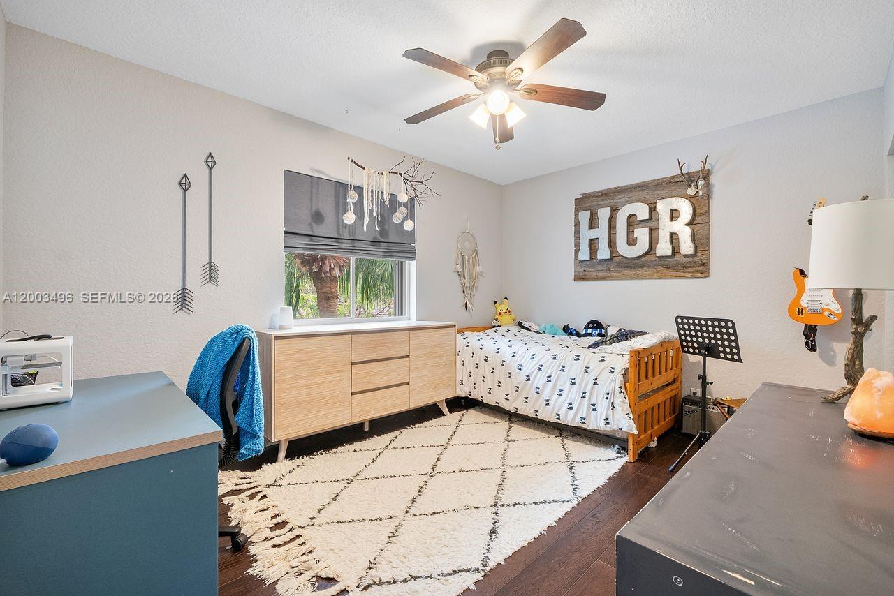 WOW FACTOR ALERT in sought-after Sabal Lakes! Situated on prime corner lot, this beautifully updated 2-story residence offers 4BR (all on 2nd floor), 2.5BA + loft, 2,454 SF under air, & the perfect blend of style, space & function. Rich wood flooring accented by stunning ceramic mosaic inlay leads to French doors opening to incredible backyard retreat. Kitchen features granite counters, wood cabinets, island, walk-in pantry and SS appliances. Abundant natural light. Oversized primary suite is true showpiece w/room for sitting area, 2 custom walk-in closets, elegant crown molding & spa-inspired, magazine worthy bath—w/double sinks, frameless glass shower, soaker tub inside shower, designer niches & shaving nook too. Spacious loft area offers endless flexibility—perfect for kids' retreat, gym space or reading lounge. One BR is currently styled as a office w/custom wood paneling & built-in desk. Storage is plentiful throughout, including under-stair storage & a closet accented w/rustic barn door. Step outside to fenced backyard oasis featuring lush tropical landscaping, mature trees, built-in fire pit & plenty of room to relax or entertain. Newer roof and impact windows & doors adds peace of mind. Sabal Lakes has a community pool & located minutes to downtown Delray, beaches, dining, shopping, & a short walk to a top-rated elementary school. This is the one buyers wait for—stylish, spacious & unforgettable.