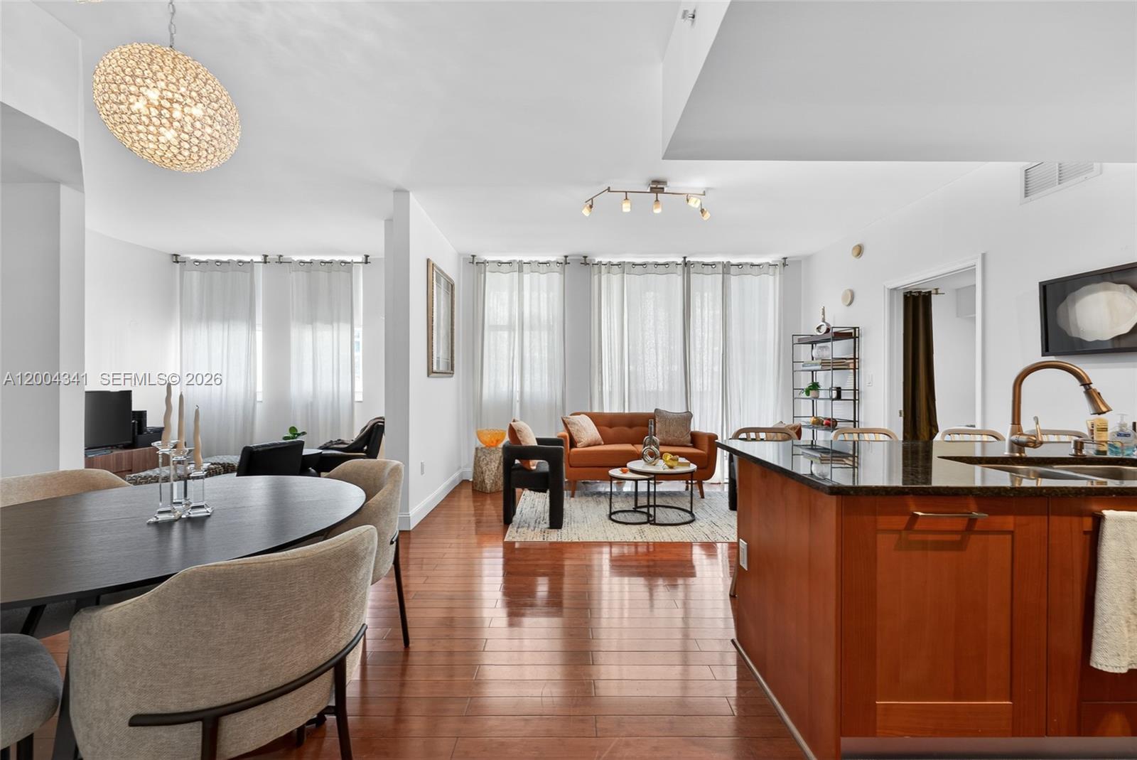 Experience sophisticated living in the heart of Downtown Coral Gables in this beautifully appointed 2 bedroom + den residence spanning 1,066 SF. Thoughtfully designed with a seamless blend of style and function, this home features rich bamboo flooring, a sleek modern kitchen with stainless steel appliances, and high-impact windows and sliding doors that bathe the interiors in natural light. A versatile den offers the ideal space for a private office or refined lounge, complementing the open-concept layout tailored for both everyday living and effortless entertaining. Indulge in resort-style amenities including a pool, state-of-the-art fitness center, jogging path, recreation room, and 24/7 concierge and security. This pet-friendly building includes one assigned garage parking space. Perfectly positioned in one of Coral Gables’ most coveted locations, Merrick Park’s premier boutiques, dining, and cafés are just steps away, with Miracle Mile, the University of Miami, lush parks, and cultural destinations moments from your door. Enjoy seamless access to US-1 and major roadways while immersed in the timeless elegance and walkable lifestyle that define Coral Gables.