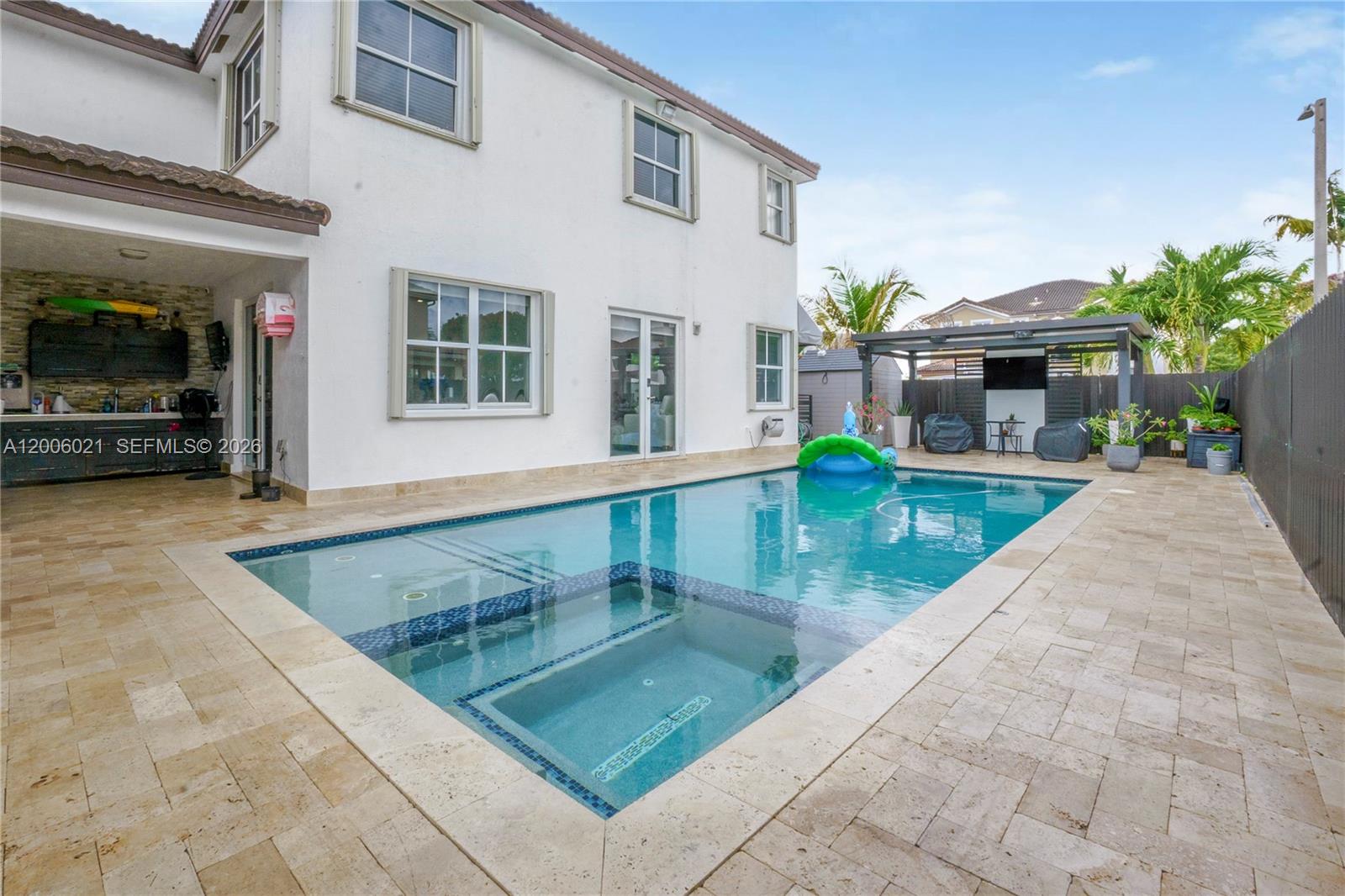 Beautiful updated 4-bedroom 3-bathroom home featuring elegant glass stairs, spacious family room and dining rooms, a modern kitchen with appliances included. Step outside to your private oasis with a pool and stylish pergola perfect for entertaining.