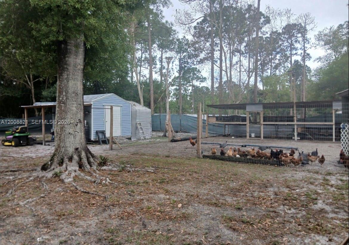 Discover the peaceful country life on this beautiful and cozy 1.25 acres property, remodeled 3 bed/2 bath, enclosed by fencing with an electric gate. The grounds boast beautiful mature oak trees, an animal pen with a separate section for goats, a chicken coop and ample open space to enjoy. Is a spacious double wide manufactured home featuring a custom 24x14 foot extension, creating a comfortable second living area, this includes hurricane impact resistant windows and doors, providing enhanced safety and energy efficiency, as well as high quality tinted windows. All interior walls have been renovated with drywall. High-efficiency mini-split air conditioning systems, the living room unit also features a heating function for cold weather. You can enjoy a raised wooden front deck complete with railings. Metal roofing provides superior durabilit y. The property has a private well with a brand new filtration system and a new pump turbine. The septic tank has been recently cleaned.The roof is brand new, installed in 2024. The foundation is also new, installed by specialized and qualified professionals,also includes new shed with permits. As an potential source of income for the buyer, an RV is included with the property; this unit can be rented, has 1 bed/1 bat, living area and kitchen. The seller is offering up to $15,000 to cover the buyer's closing costs! Rarely is such a special combination found on the current market. Schedule your private viewing today!