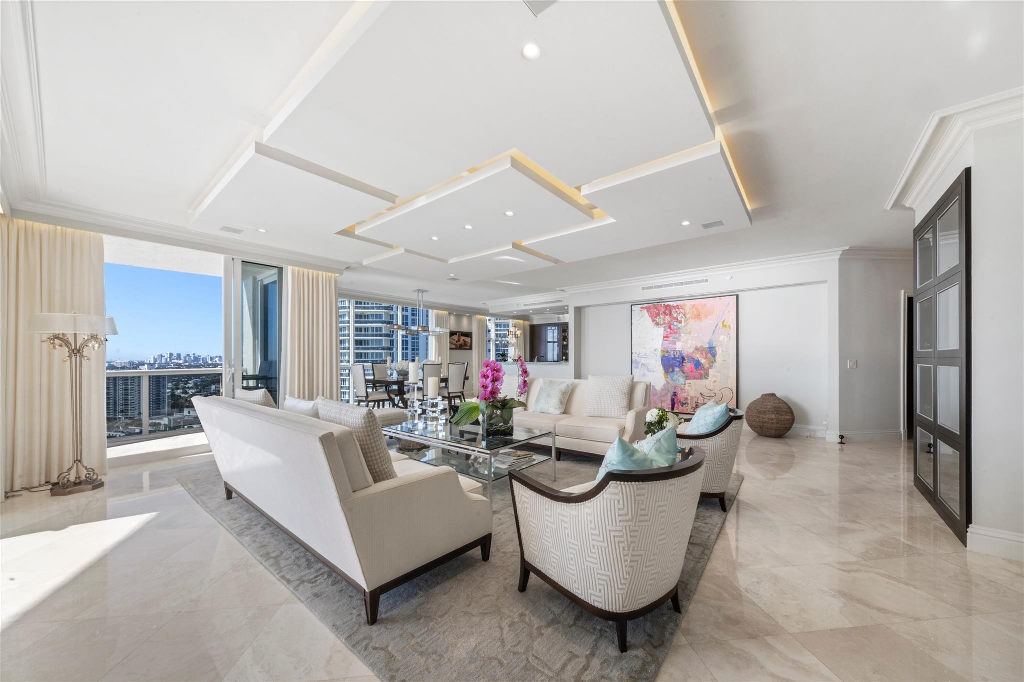 DIRECT OCEAN FRONT RESIDENCE, RARELY AVAILABLE, SPECTACULAR DIRECT OCEAN AND COAST LINE VIEWS, TRULY BEST SOUTHEAST VIEWS & FLOOR PLAN AROUND, Luxury living on the sand. Completely renovated with designer finishes. Open Floor plan,3 bedrooms plus office. Floor to ceiling Impact Glass, Private Elevator, private foyer, Smart home technology, new AV Equip & TV, Architecturally designed ceilings, customized automated window treatments, marble floors, 2 New AC units, 2 New HWH, New House Water Filtration system, tons of storage . This exquisite gated residence is situated on over 10 acres of lush landscaping with resort-like amenities, 2 pools, tennis courts, fitness center, private beach pavilion, cafe, spas, saunas, steam room, pet friendly, 2 Garage Spots,1 w/EV Charging Station
