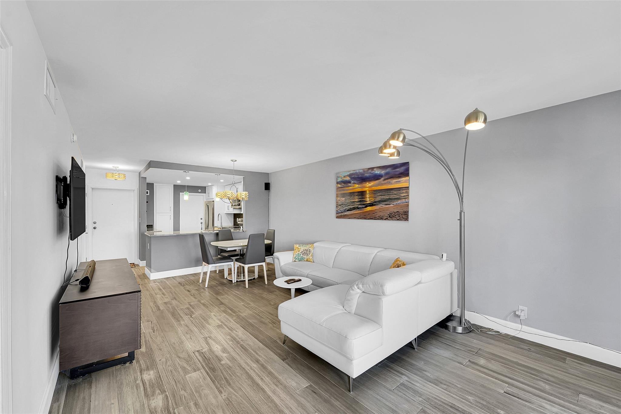 Enjoy beautiful Sunsets in this remodeled beachfront oasis with large balcony and partial Ocean views. This fully equipped condo features modern amenities including a washer and dryer for added convenience. Located on a pristine beach, away from Public access, you will enjoy deeded beach access to indulge in sand surf and breathtaking coastal scenery. Soak in the beauty of the ocean and experience the perfect blend of comfort and coastal living. Comes with 1 assigned parking space. Leisure Towers is ideally located between vibrant Lauderdale by the Sea and Pompano Beach! Building has reserves and is up to date on its recertifications. Book a showing now with your realtor or contact me for your unforgettable beach gateway!